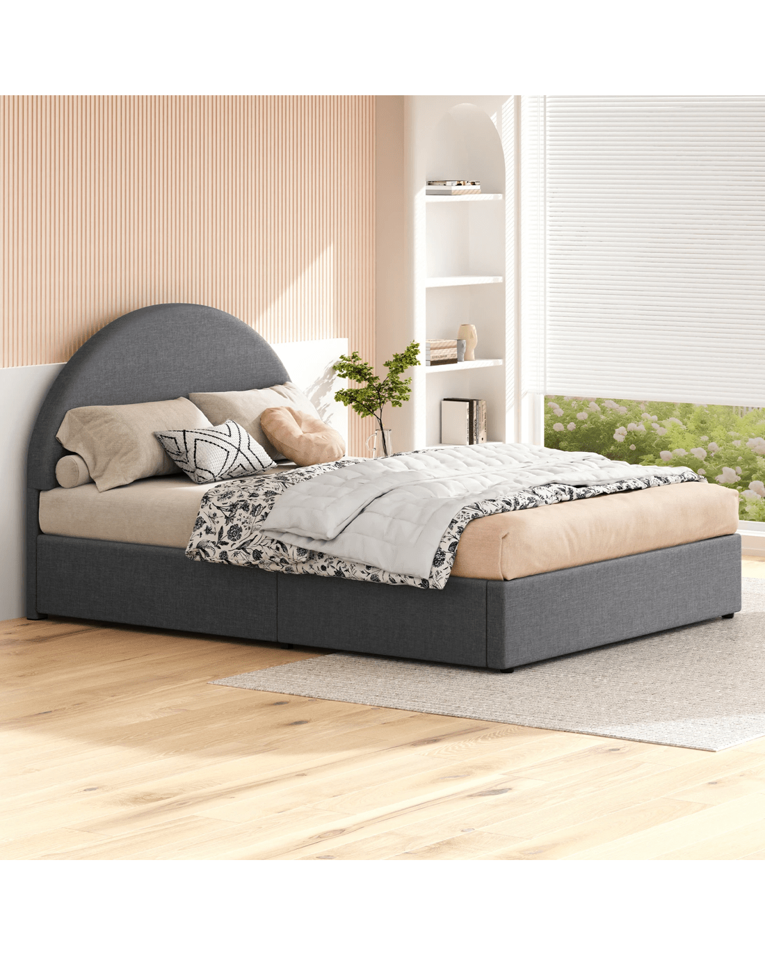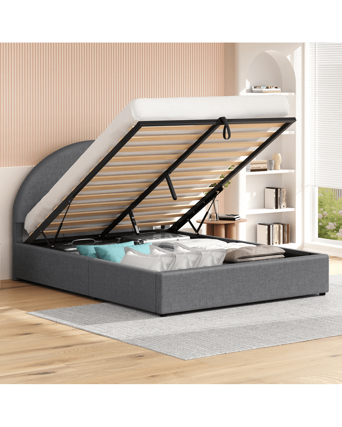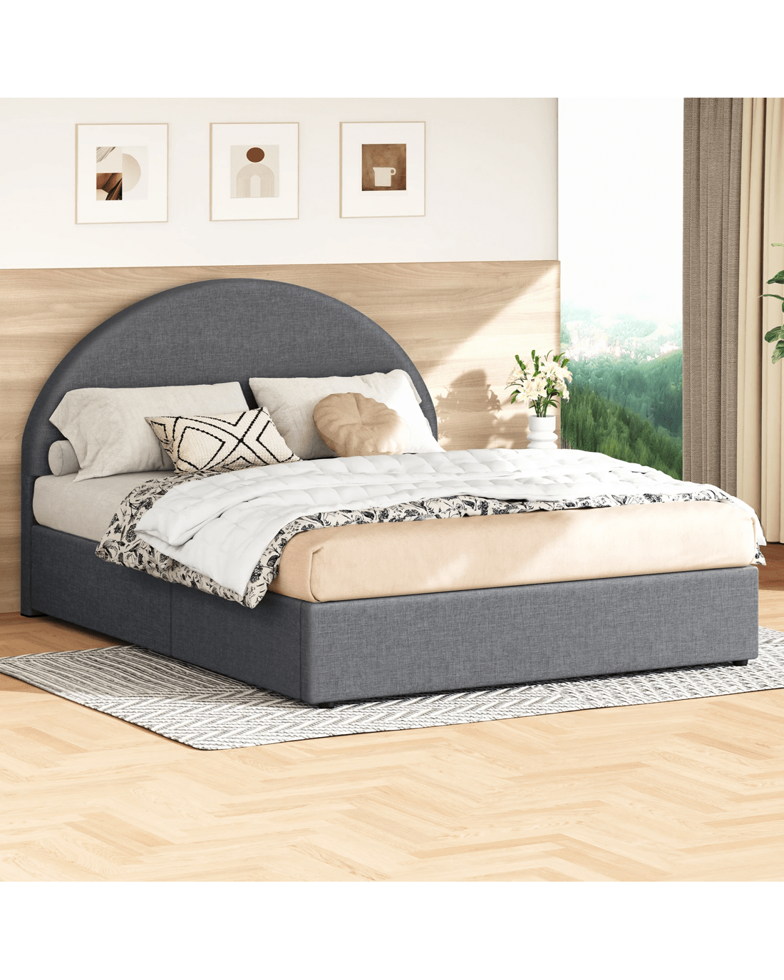 Sold by Aussie Union GroupAlfordson Bed Frame Queen Size Arched Base Gas Lift Storage Fabric Hoult - Grey