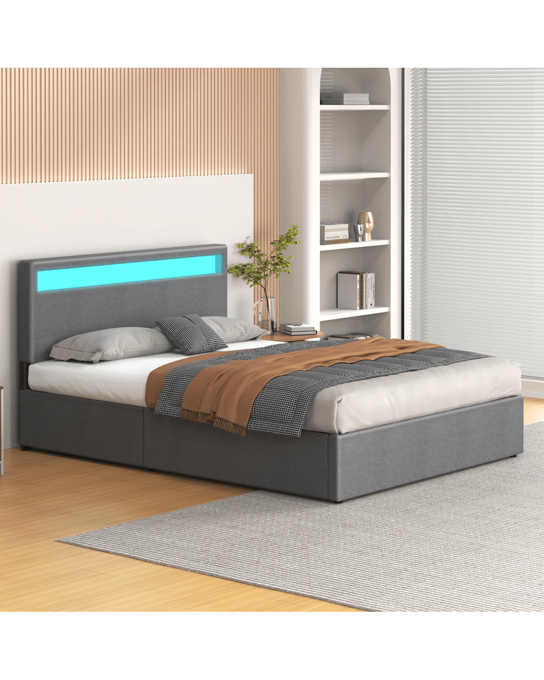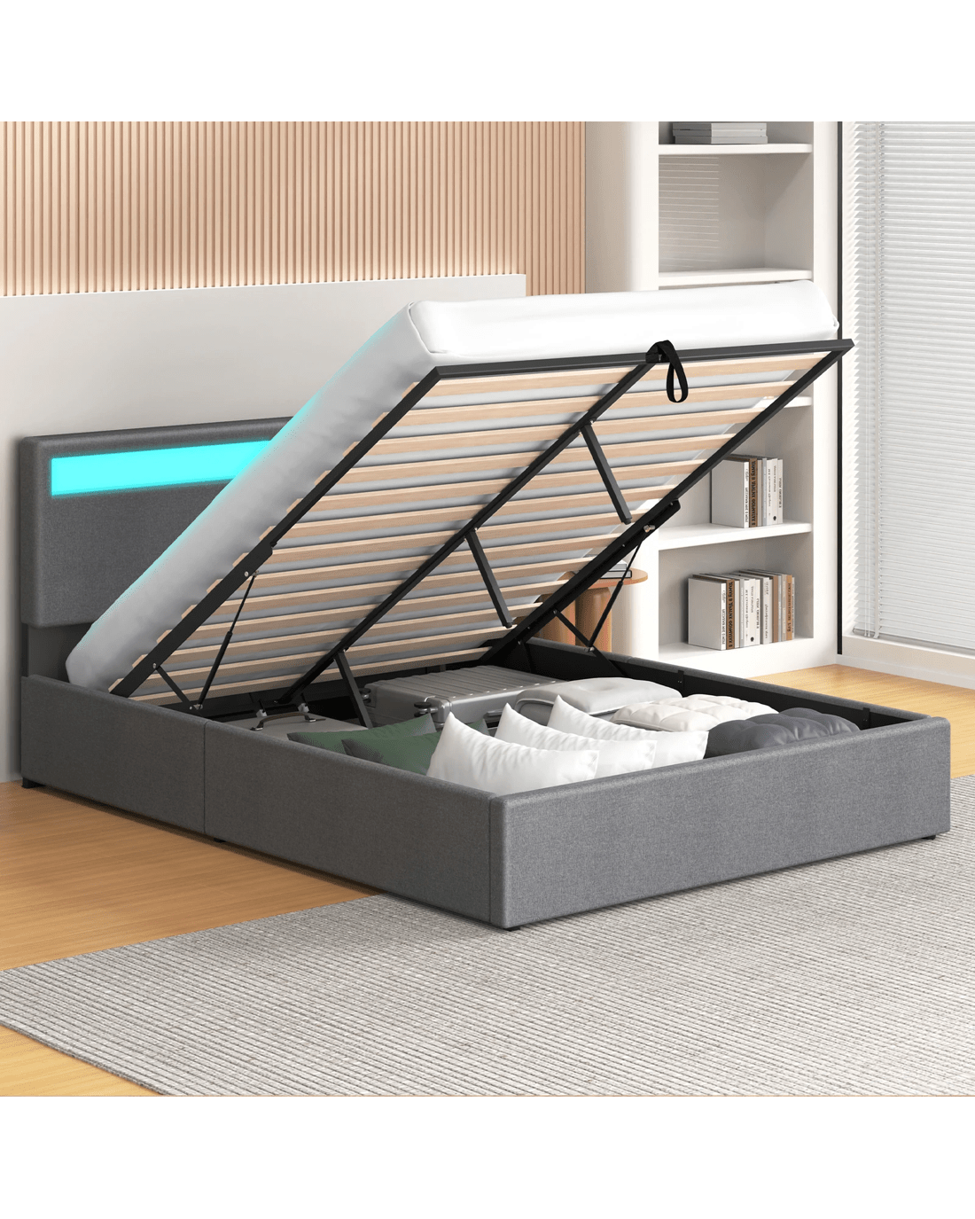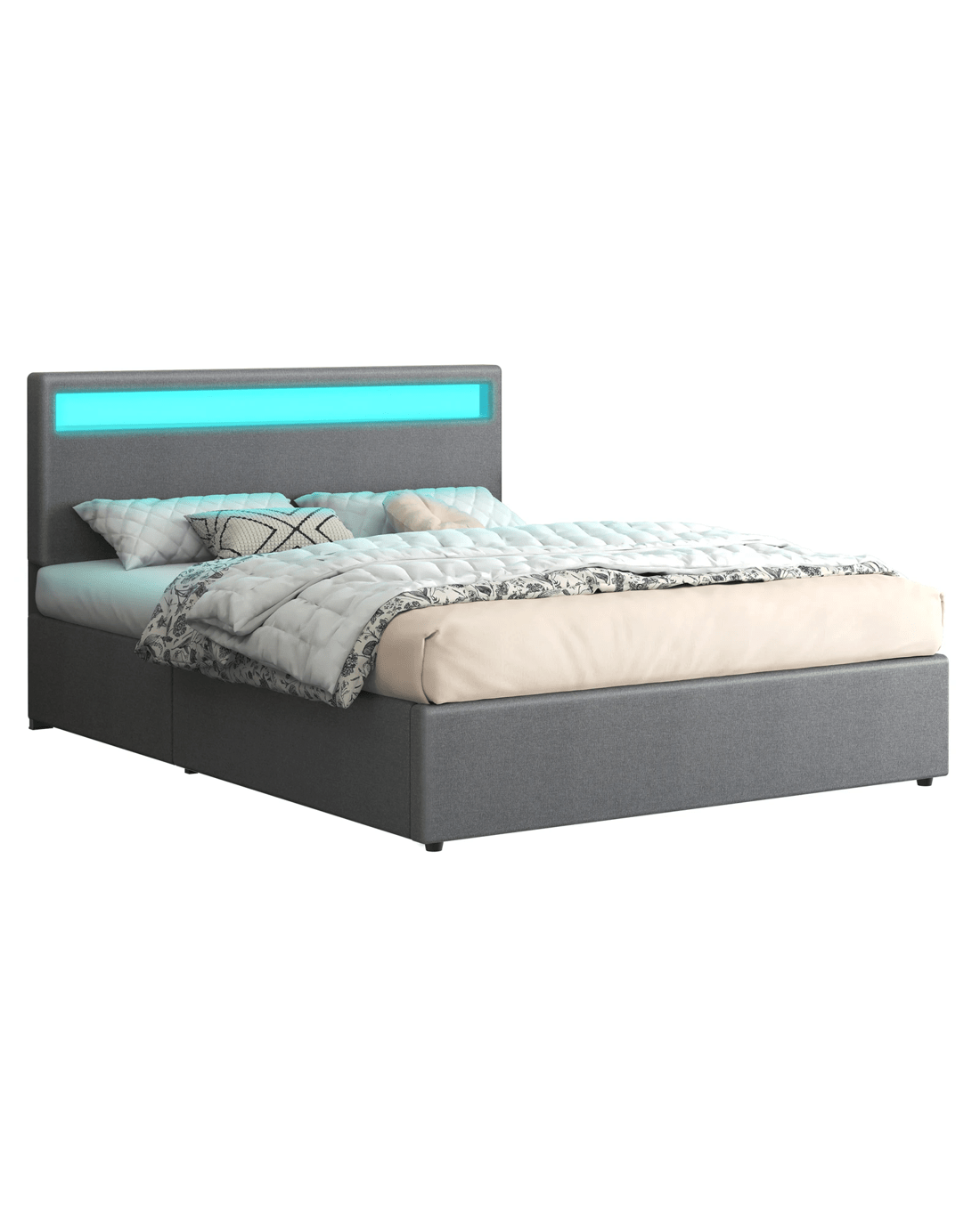 Alfordson Bed Frame Queen Size RGB LED Gas Lift Storage Base Fabric Luchino - Grey