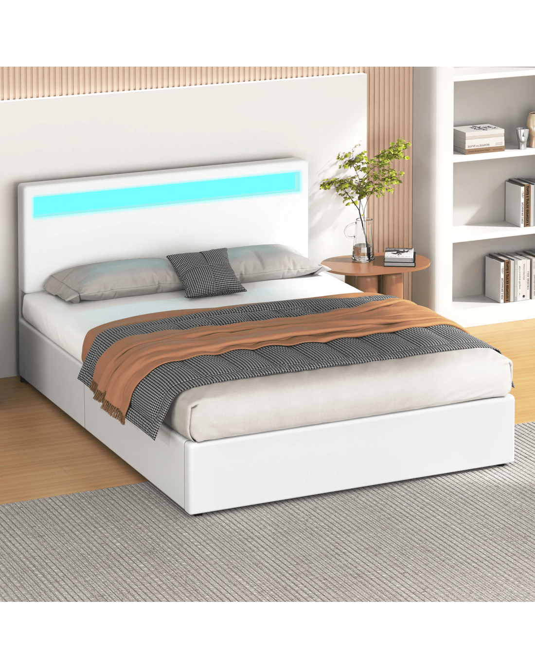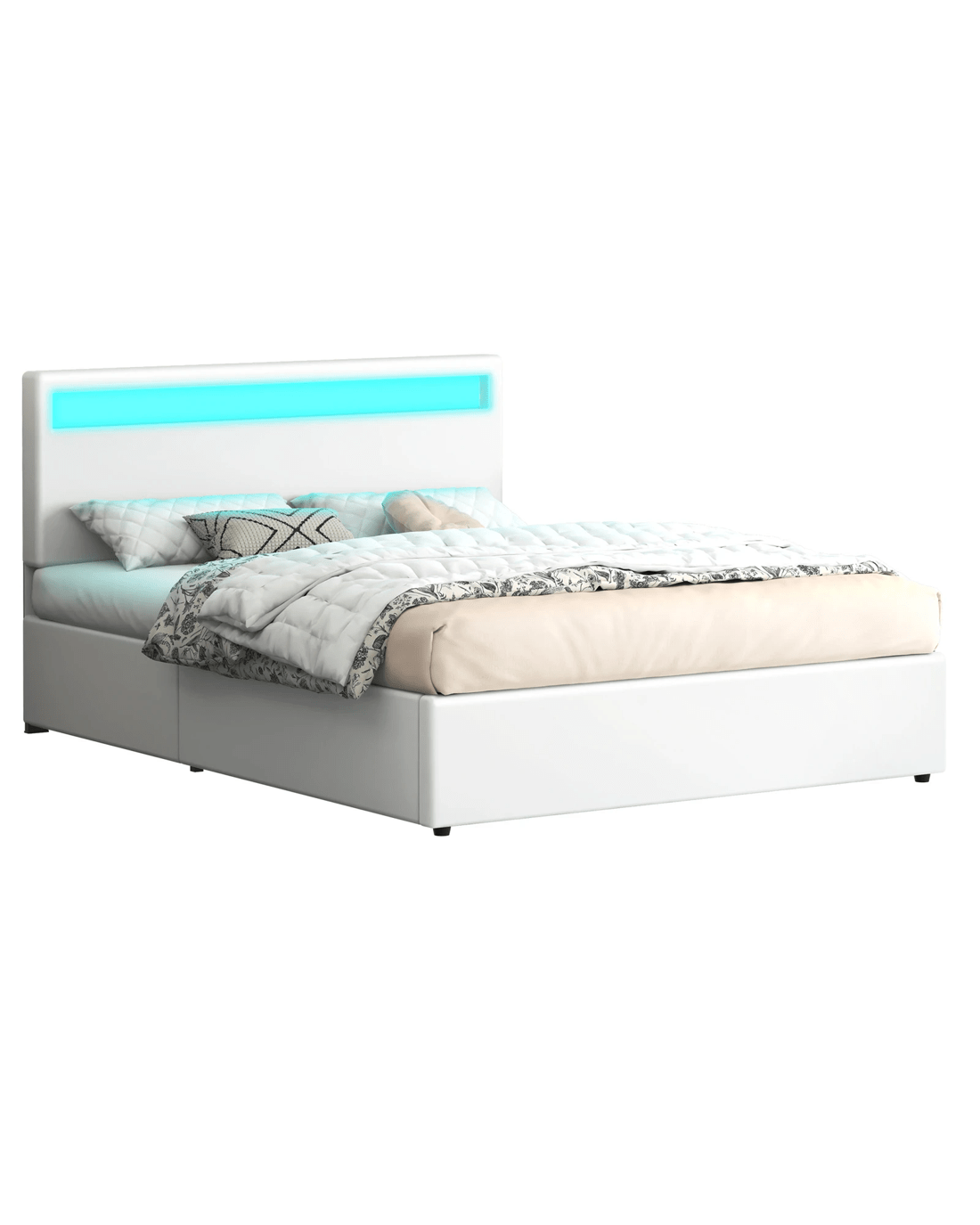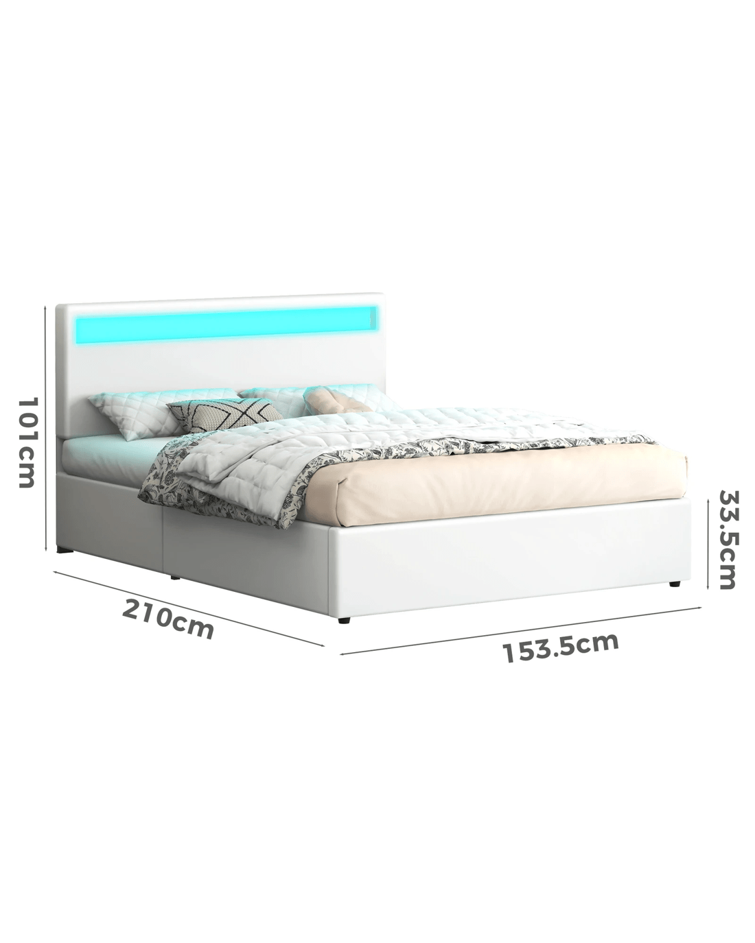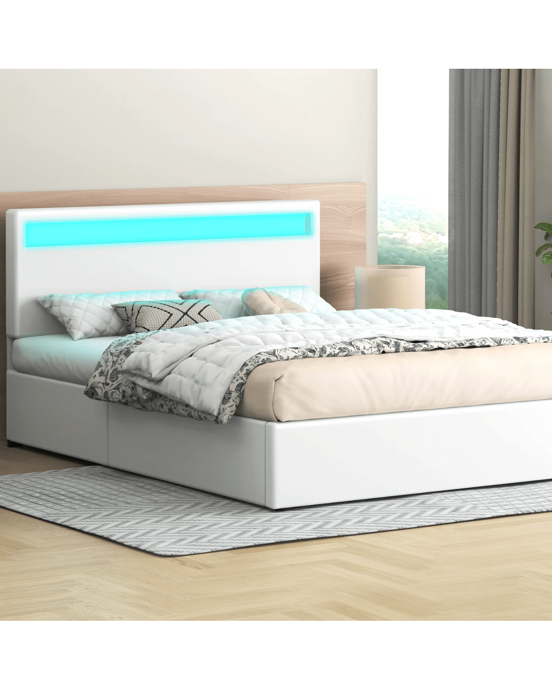Sold by Aussie Union GroupAlfordson Bed Frame Queen Size RGB LED Gas Lift Storage Base Luchino - White