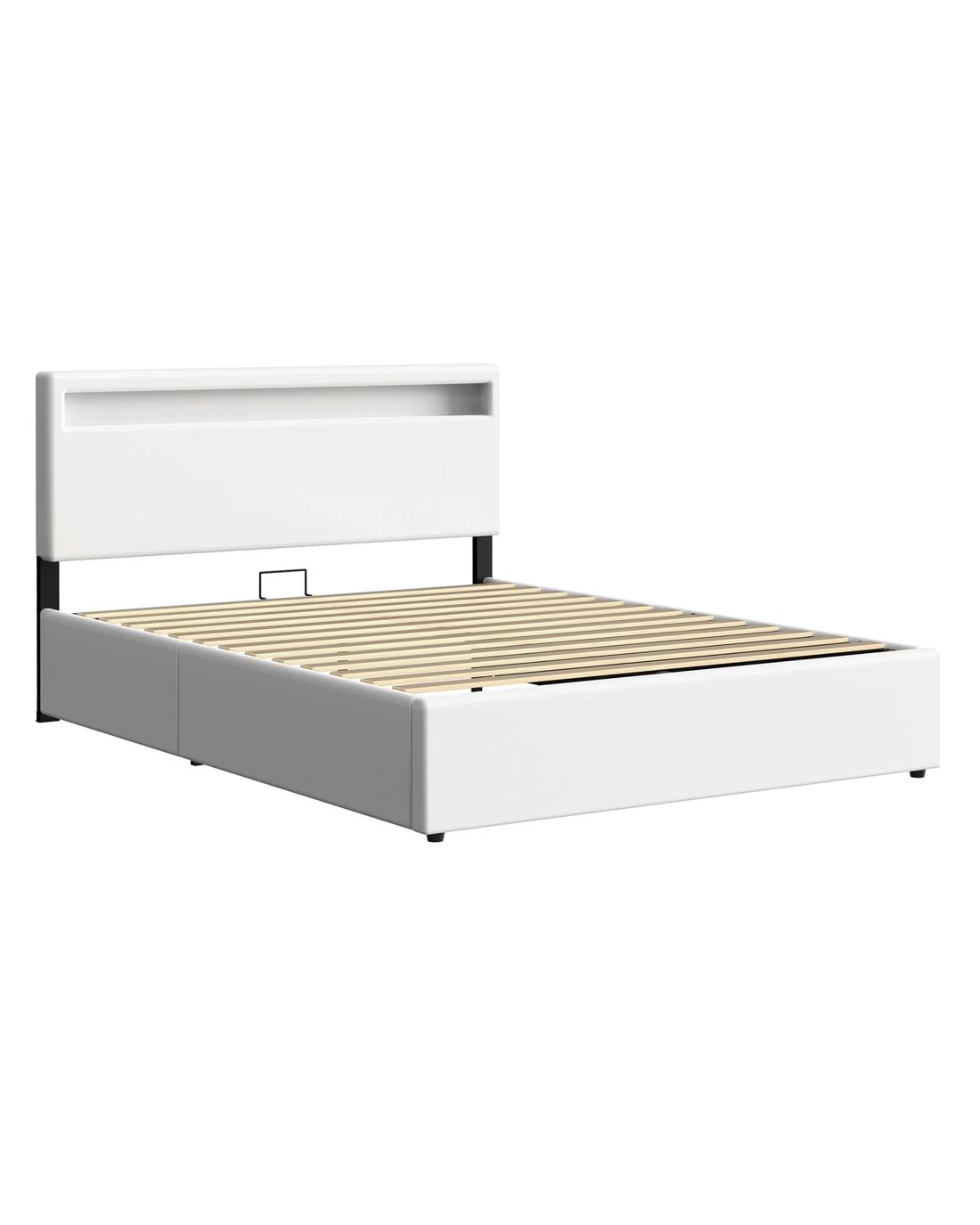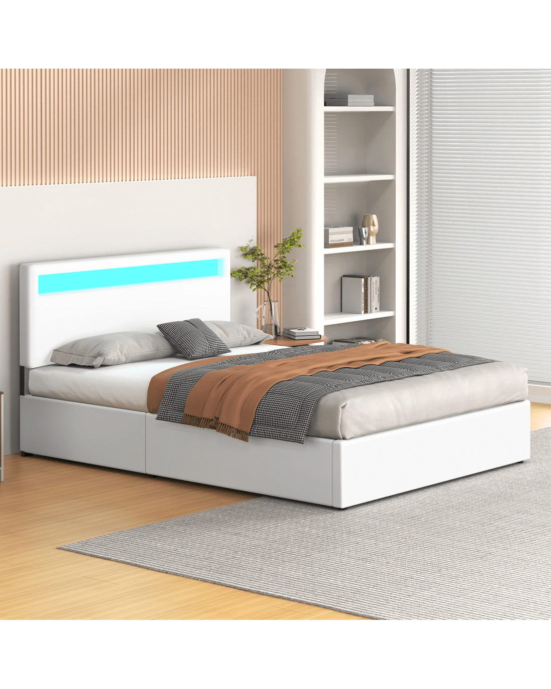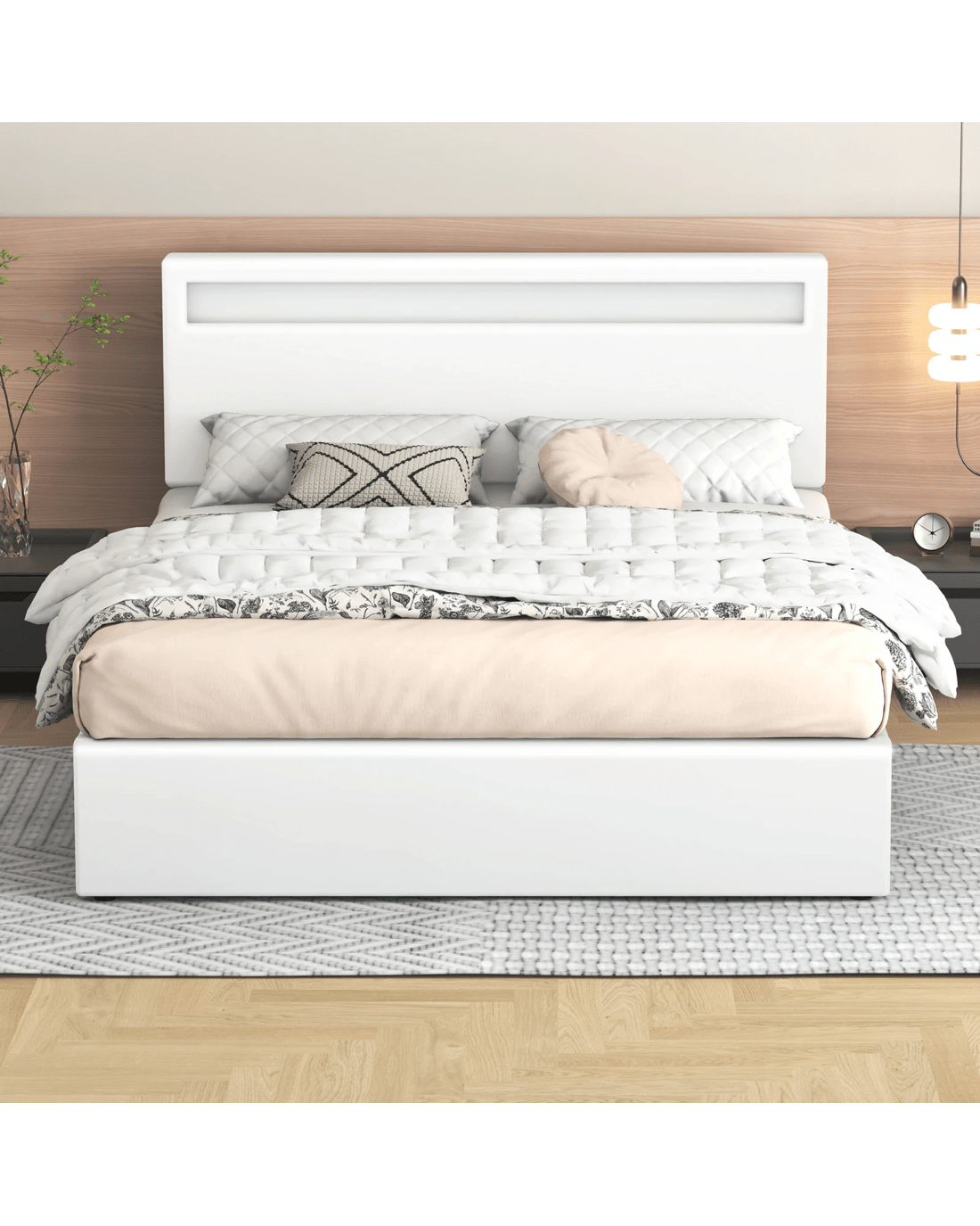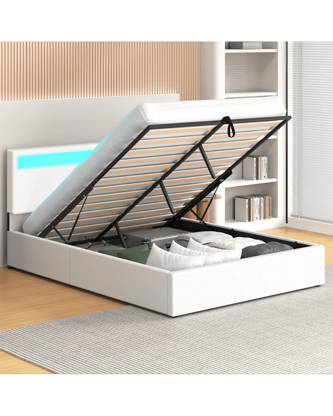 Sold by Aussie Union GroupAlfordson Bed Frame Queen Size RGB LED Gas Lift Storage Base Luchino - White