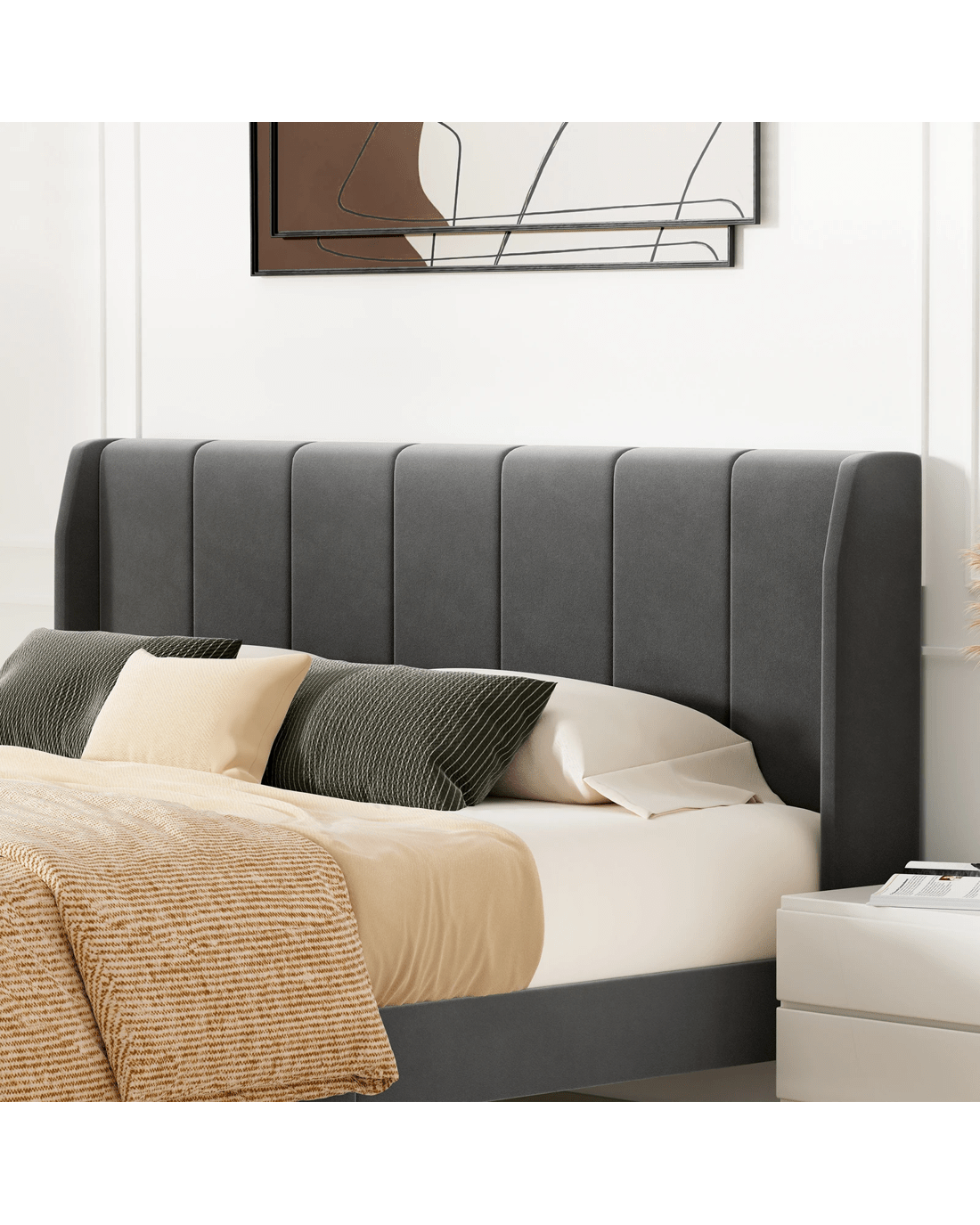 * Modern upholstered vertical slatted headboard