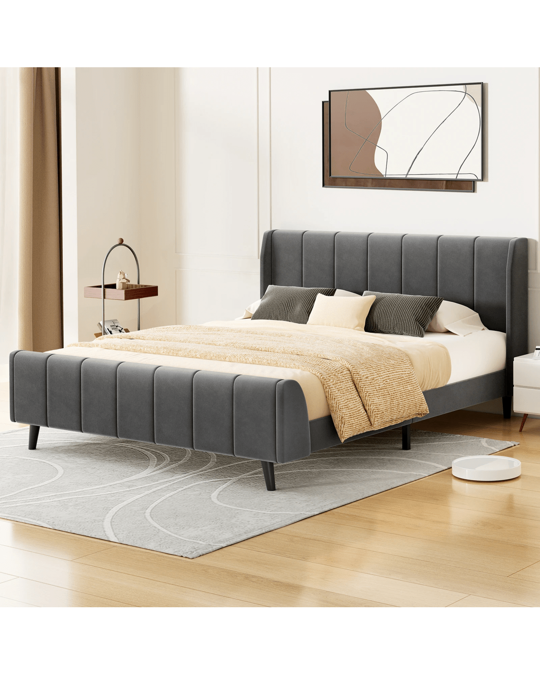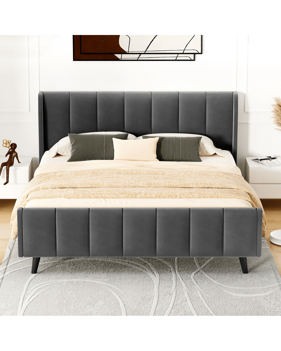 Stand-out style - Part of what's our bedroom comforting is its aesthetic appeal. The beauty of biscuit tufting bed lies in its versatility and ability to complement various design styles. Whether you're going for a mid-century modern vibe or a minimalist aesthetic, this bed has got you covered!