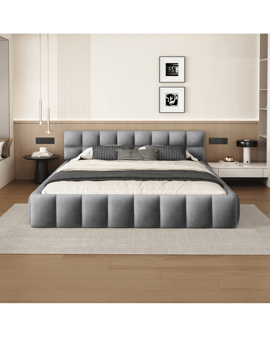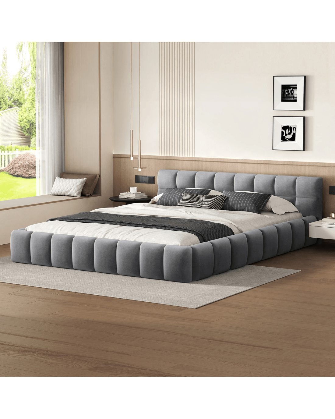 Stand-out style - Part of what's our bedroom comforting is its aesthetic appeal. The beauty of biscuit tufting bed lies in its versatility and ability to complement various design styles. Whether you're going for a mid-century modern vibe or a minimalist aesthetic, this bed has got you covered!