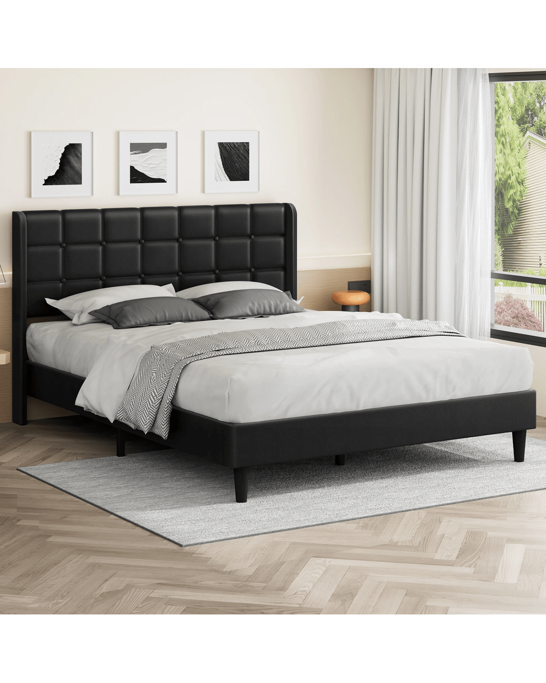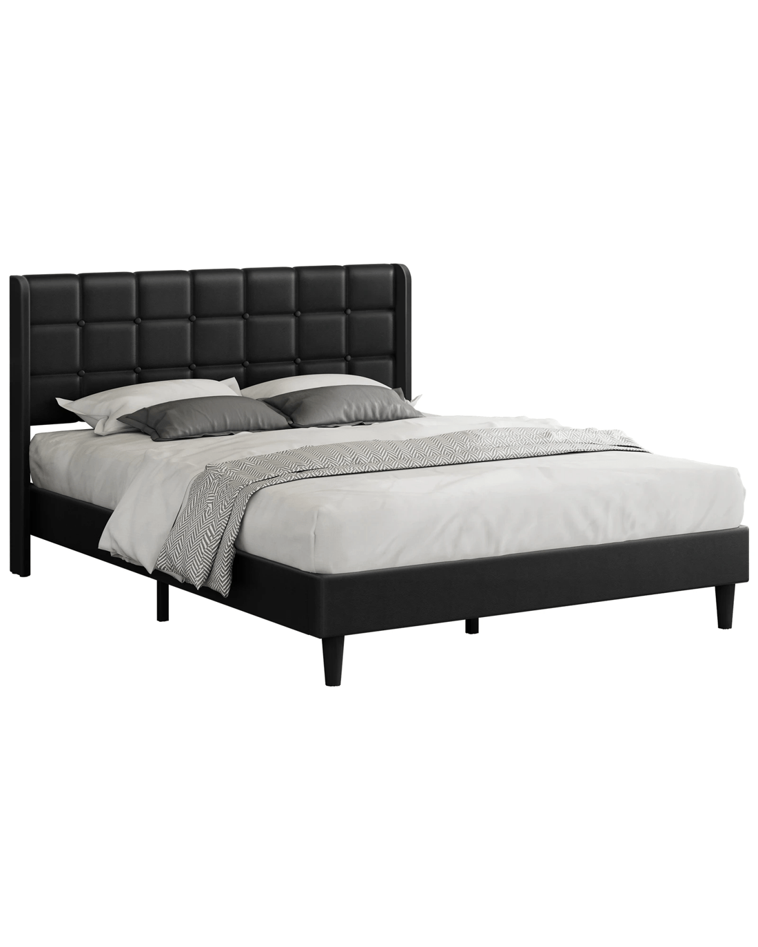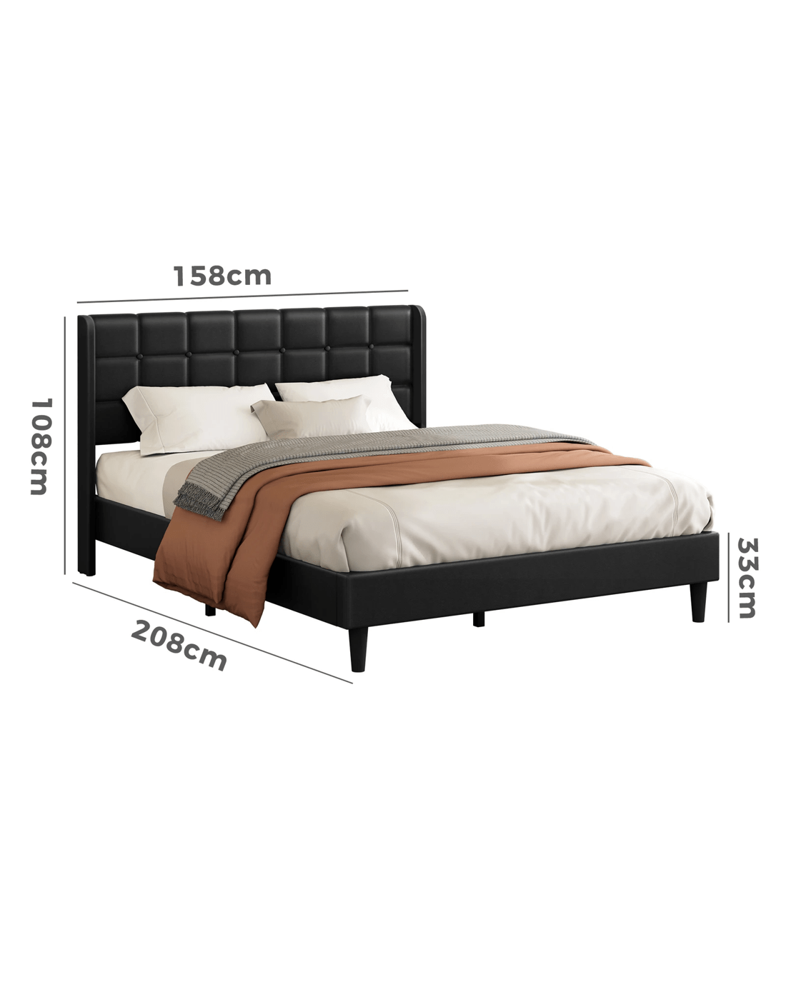 Sold by Aussie Union GroupAlfordson Bed Frame Queen Size Upholstered Wingback Base Leather Sarah - Black