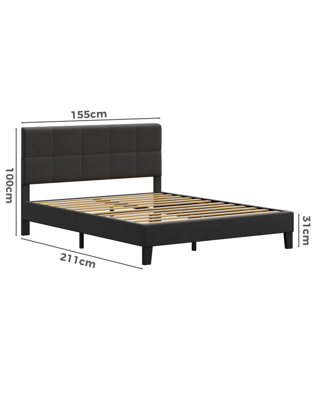 Sold by Aussie Union GroupAlfordson Bed Frame Queen Size Wooden Slats Platform Fabric Paula - Charcoal
