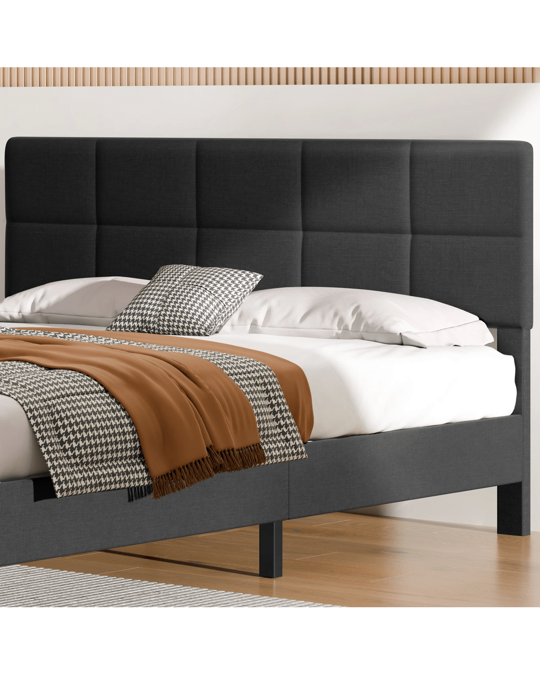 Stand-out style - A comforting bedroom begins with aesthetics. Our bed frame is thoughtfully designed with clean lines, refined details, and premium materials to bring a touch of sophistication to your space.