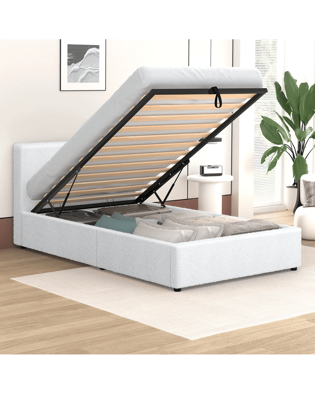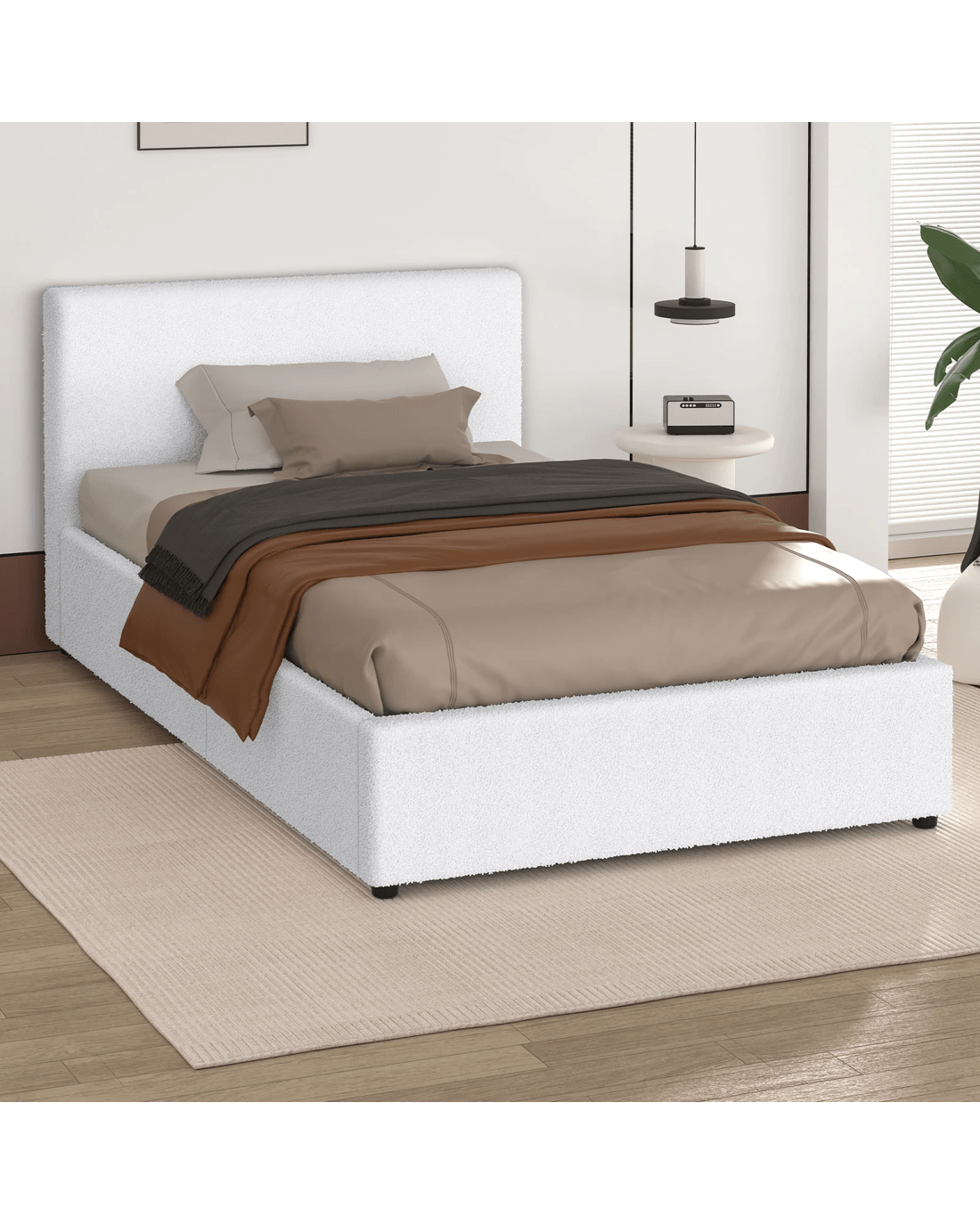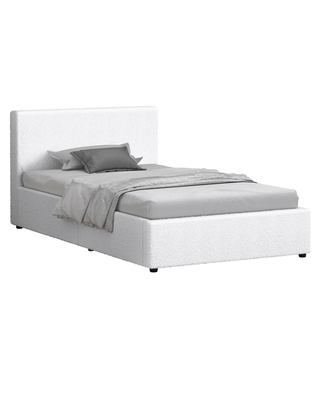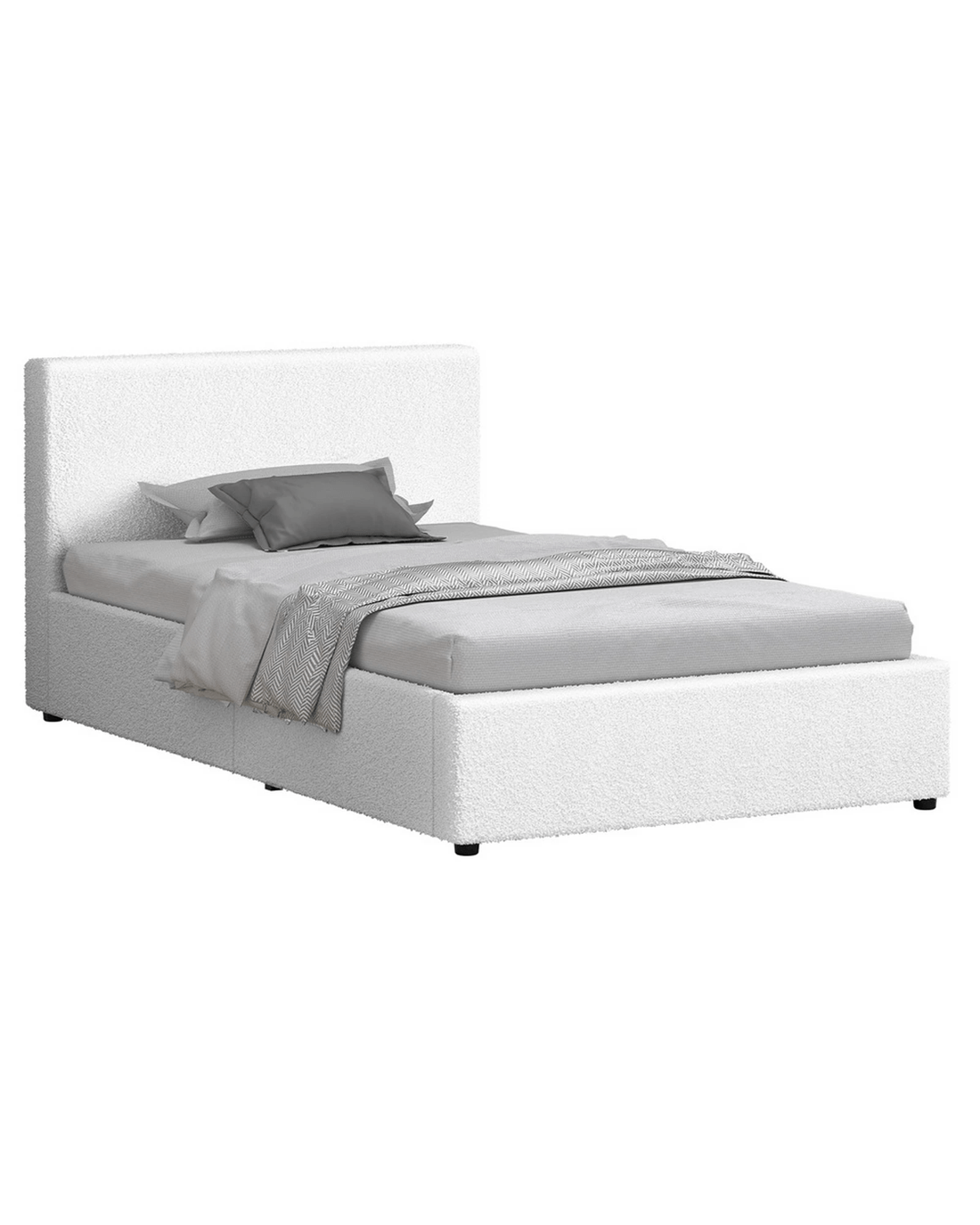 Sold by Aussie Union GroupAlfordson Bed Frame Single Size Gas Lift Storage Base Boucle Tricia - White