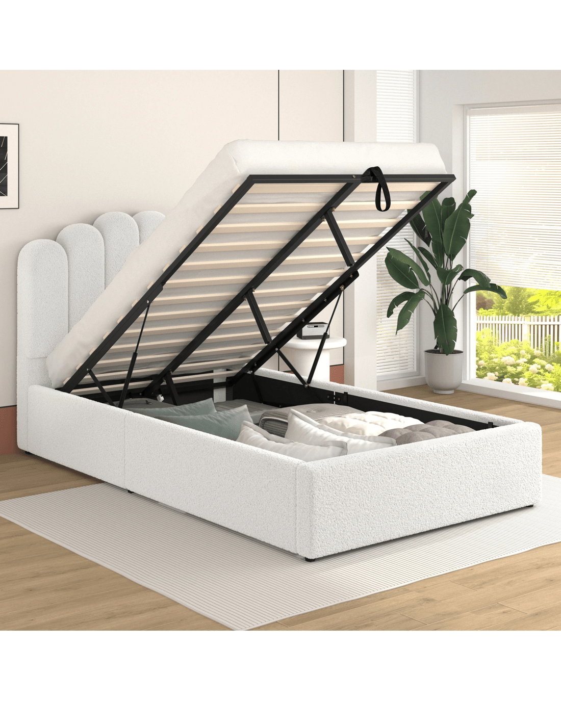 Space optimization - Our wonderful bed frame offers generous storage space without sacrificing aesthetics. Whether you live in a compact apartment or simply want to maximize your bedroom storage, our gas lift bed provides a valuable solution. Also with the unique embedded design, our bed frame will hold your mattress in place and prevent slipping and sliding.
