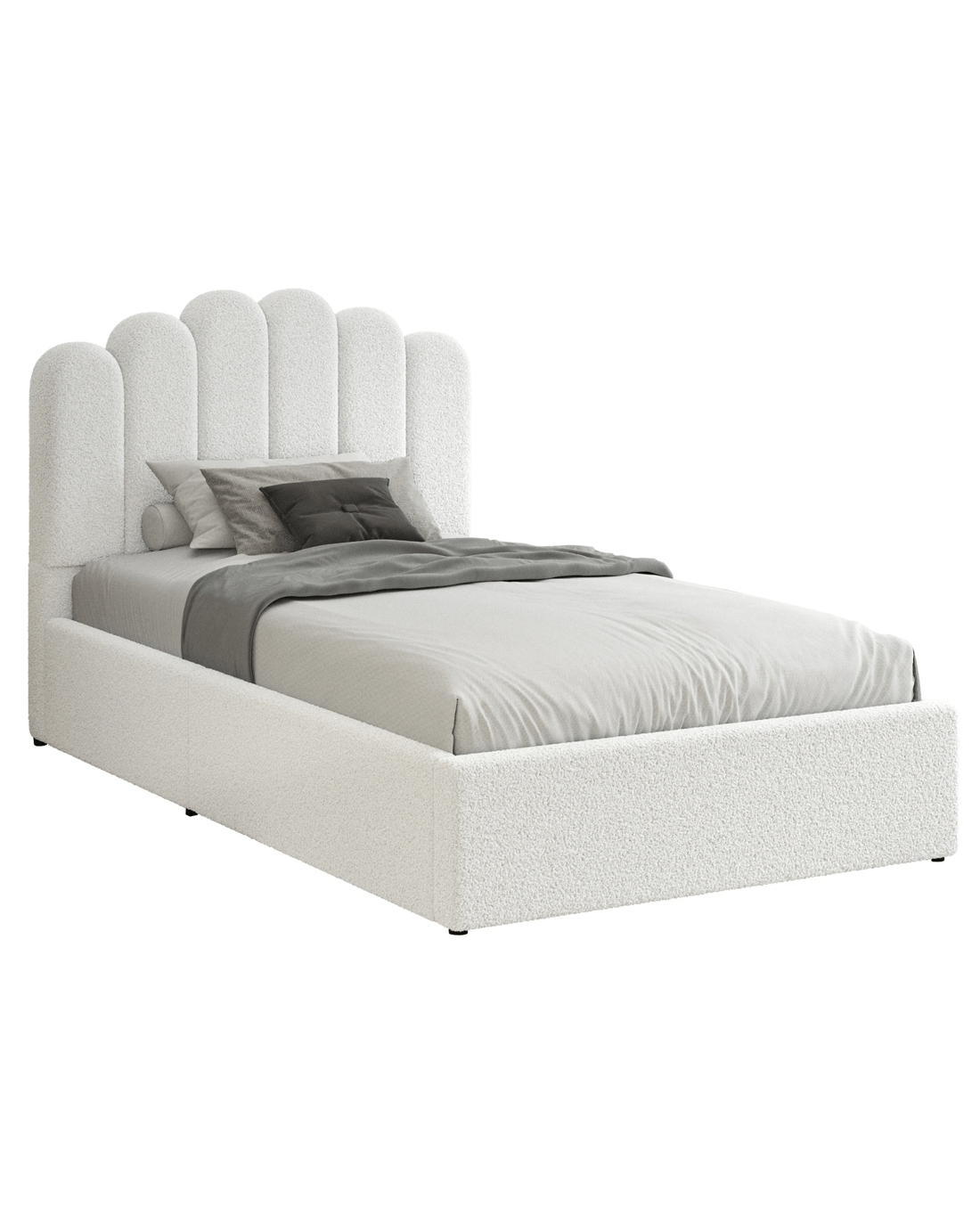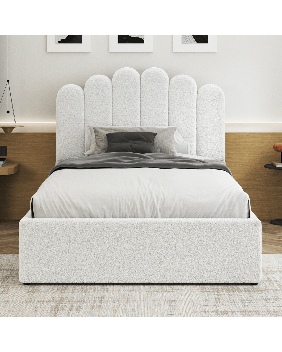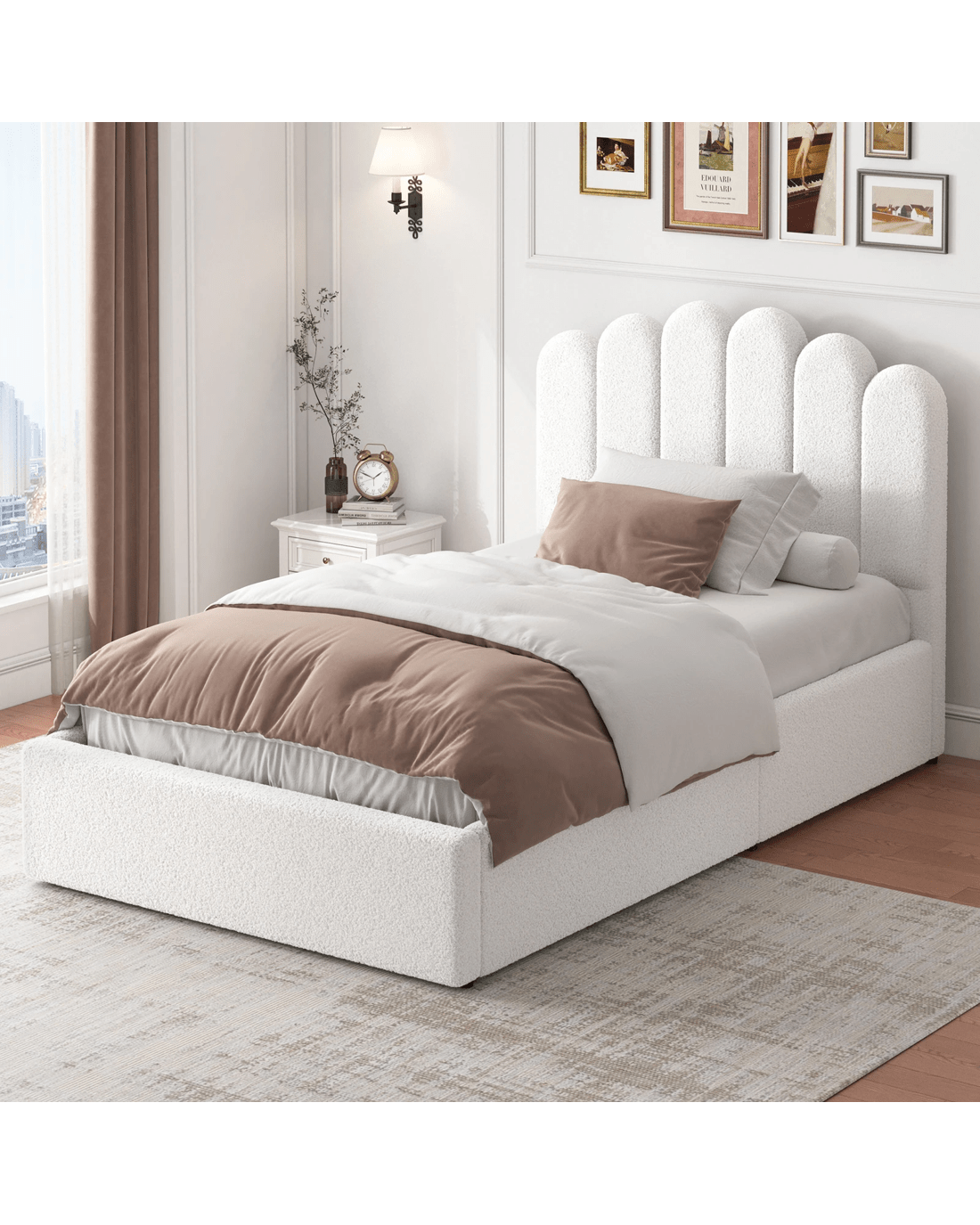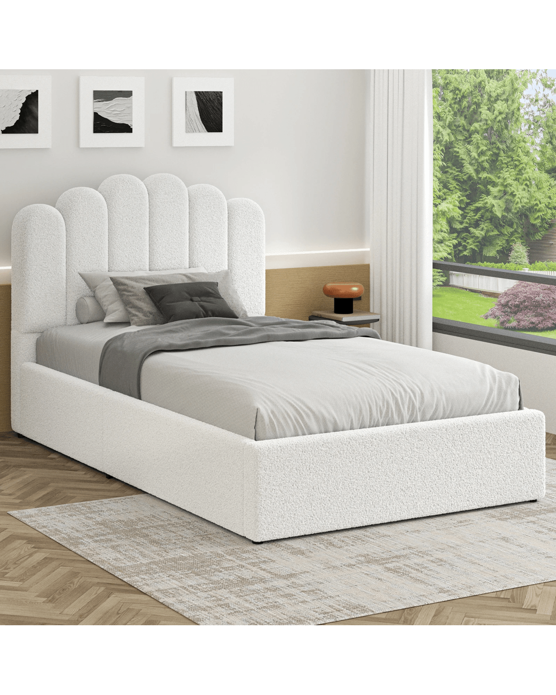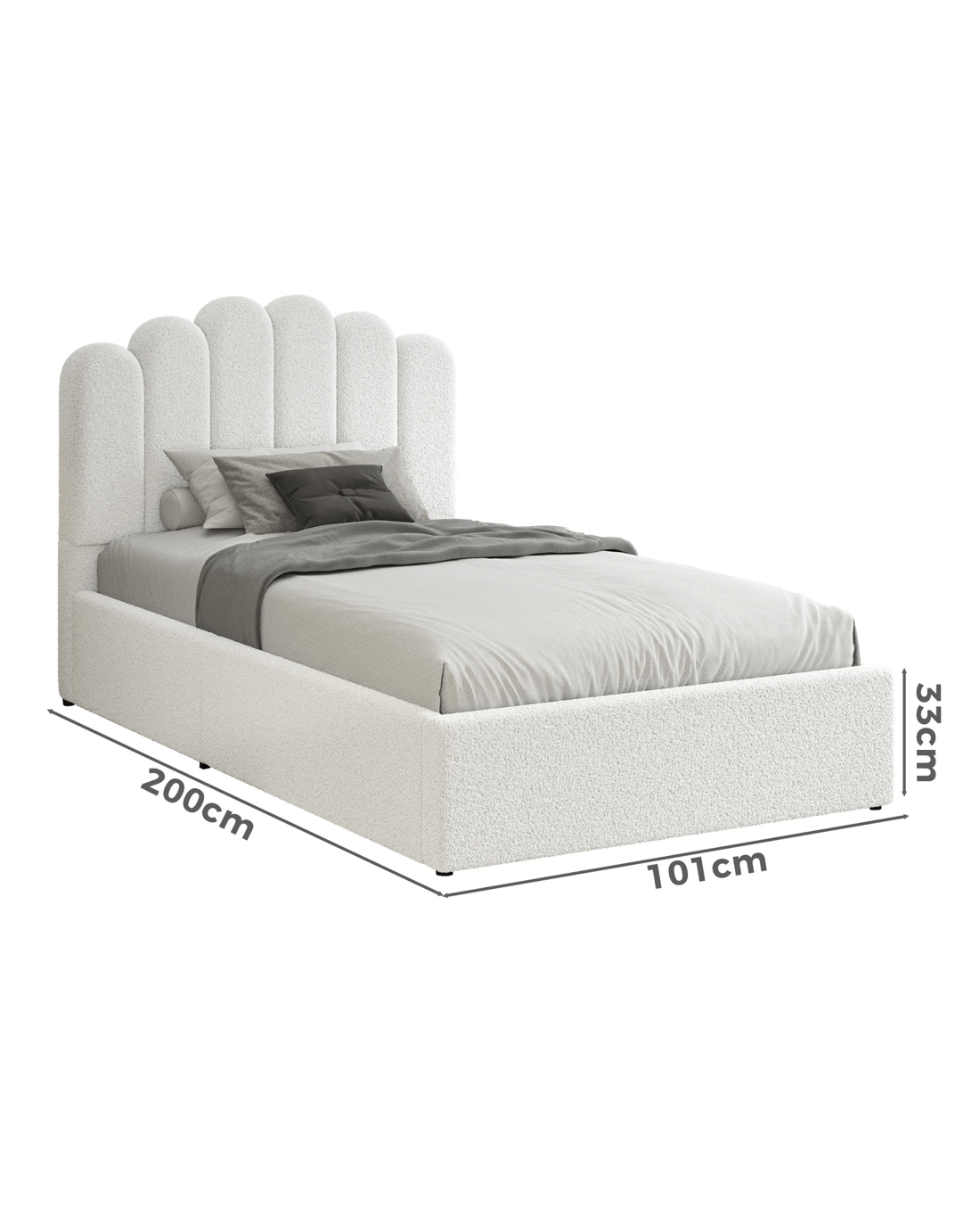 Sold by Aussie Union GroupAlfordson Bed Frame Single Size Gas Lift Storage Base Wooden Boucle Milton - White