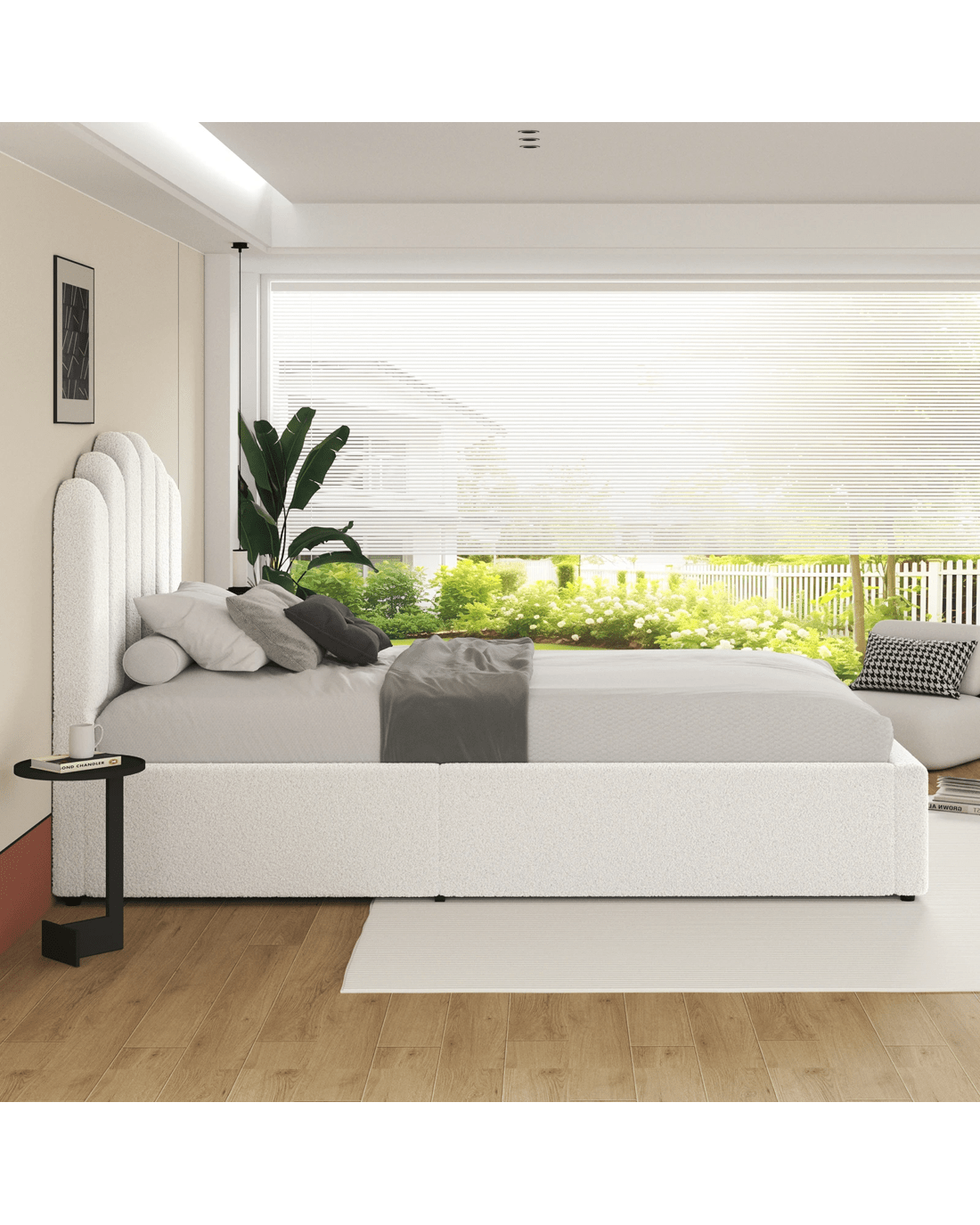 * Material: Boucle fabric, foam, wood