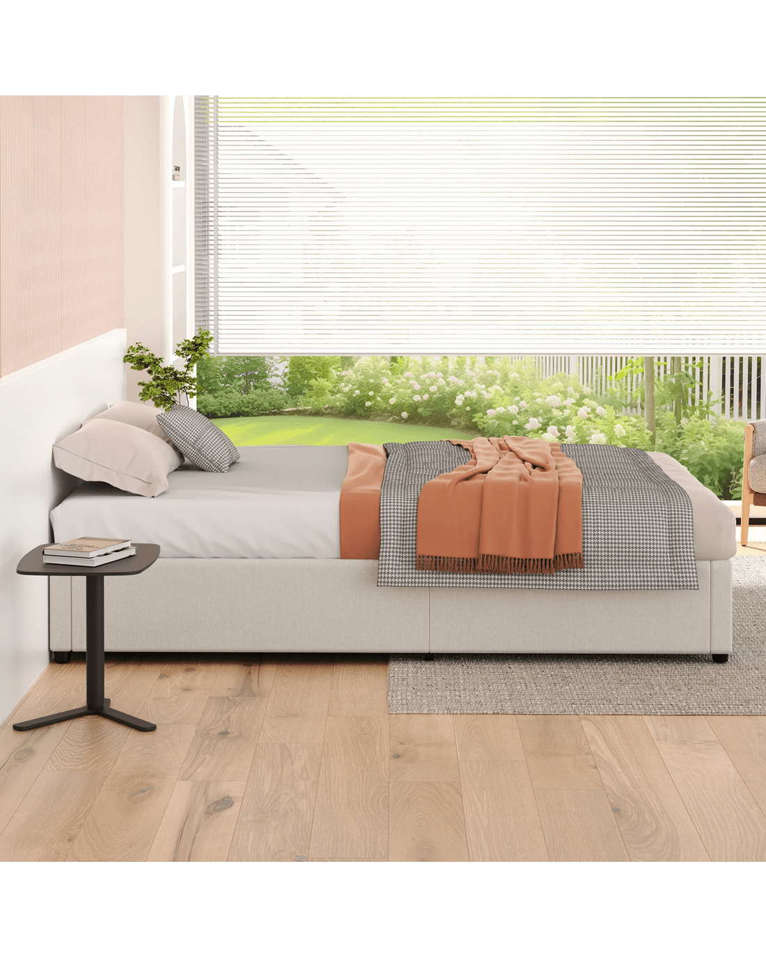 * Platform bed design - sleek and sturdy support