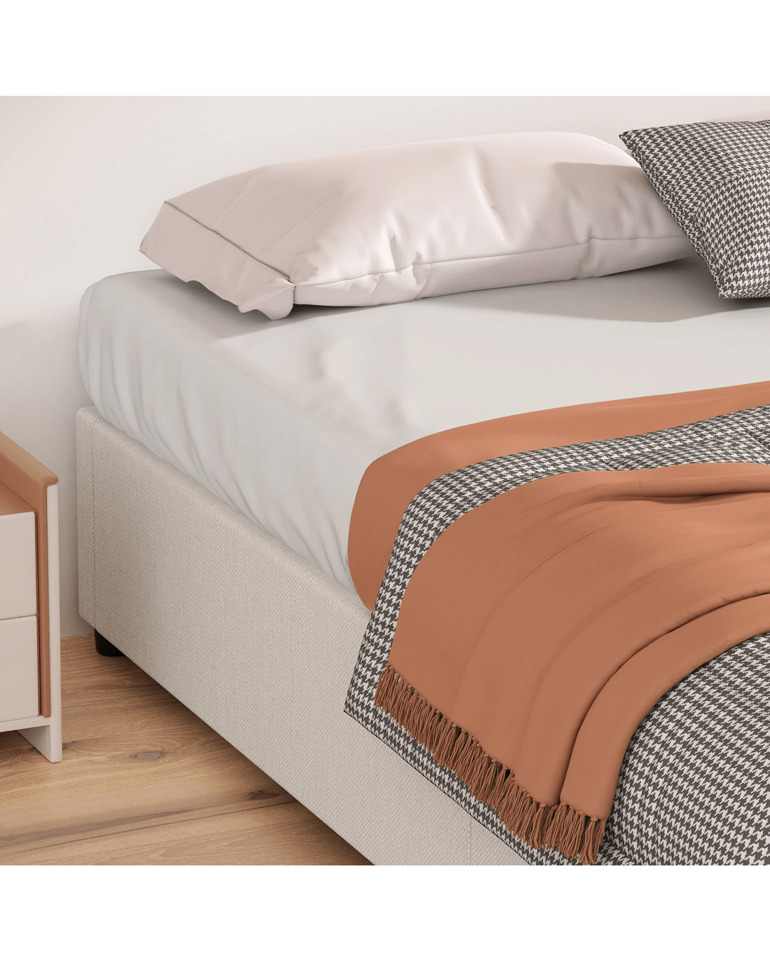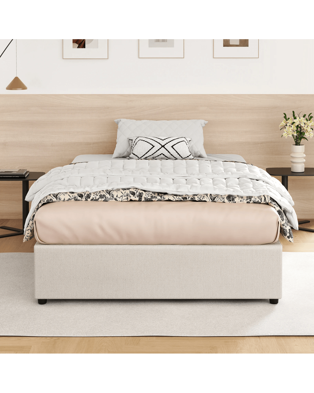 * Minimalist bed base design and upholstered with premium material