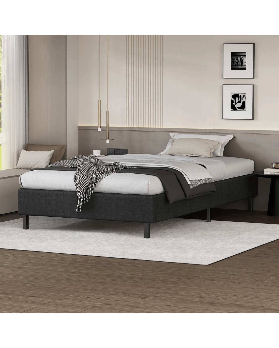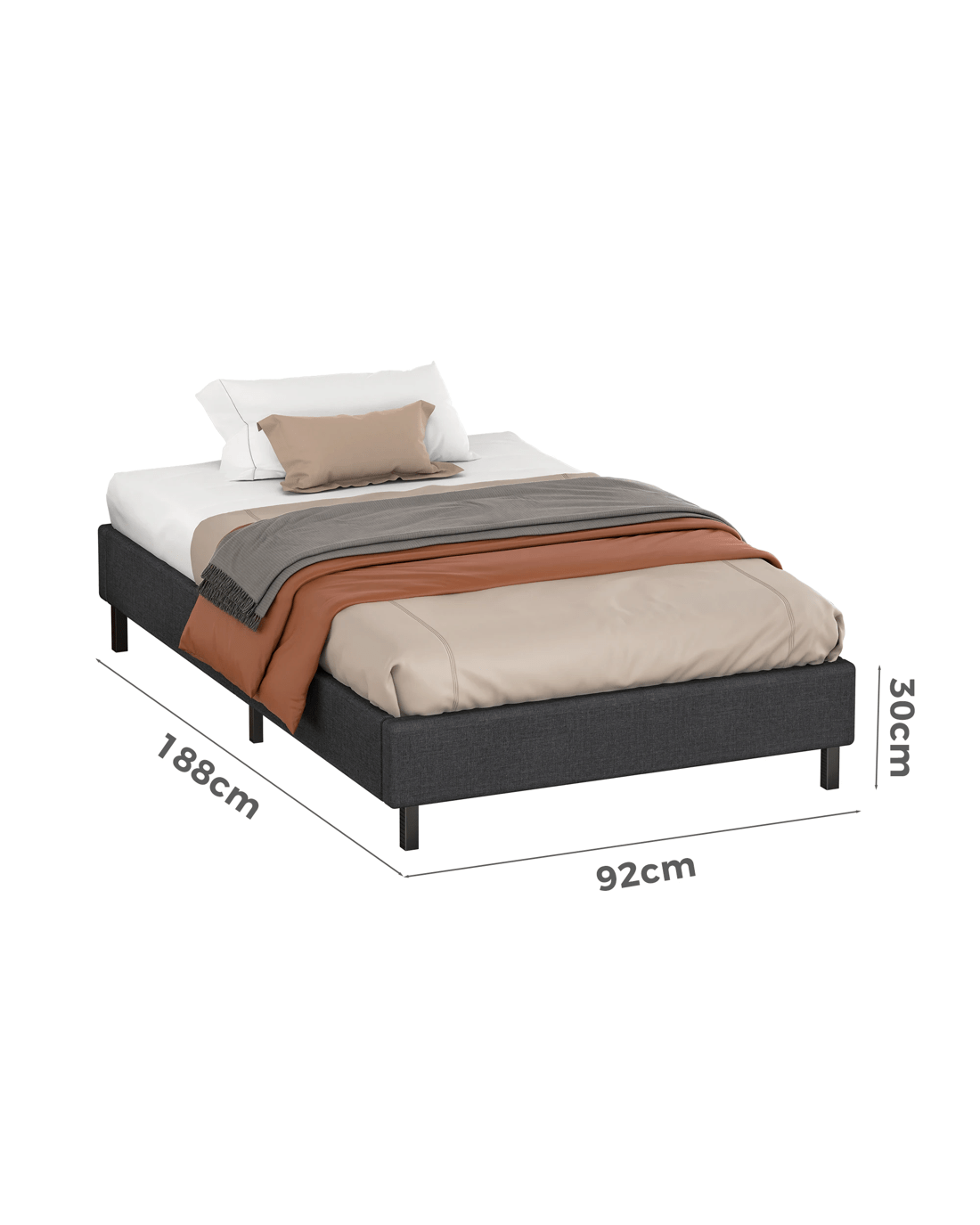 Alfordson Bed Frame Single Size Mattress Base Foundation Fabric Basel - Charcoal