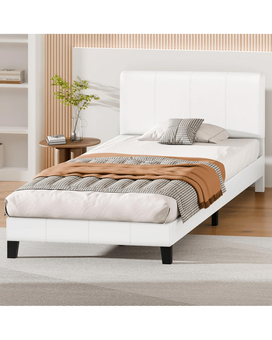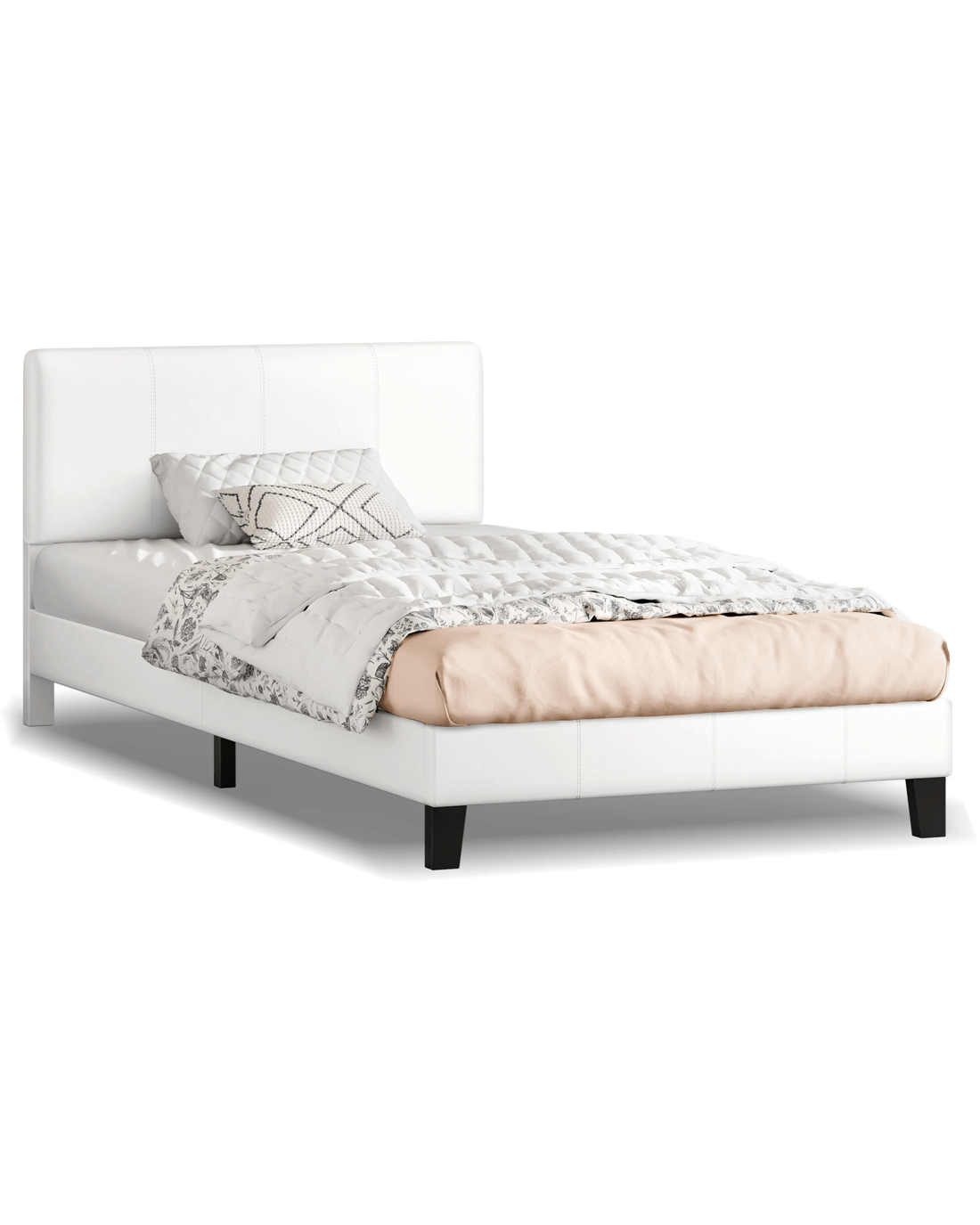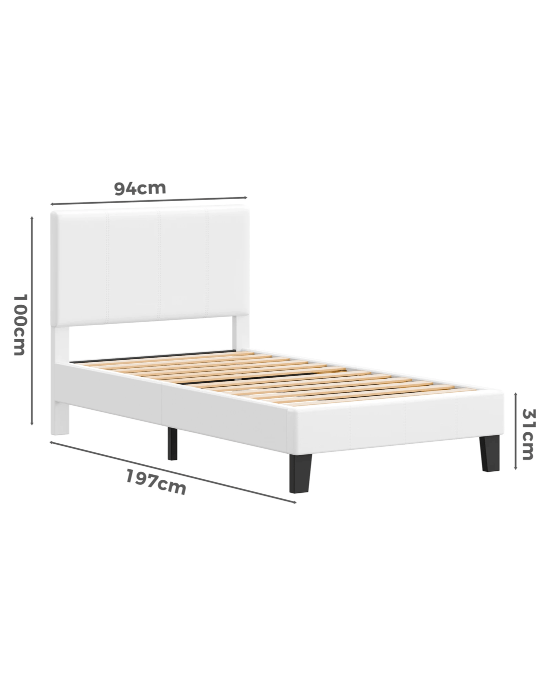 Alfordson Bed Frame Single Size Mattress Base Platform Leather Linus - White