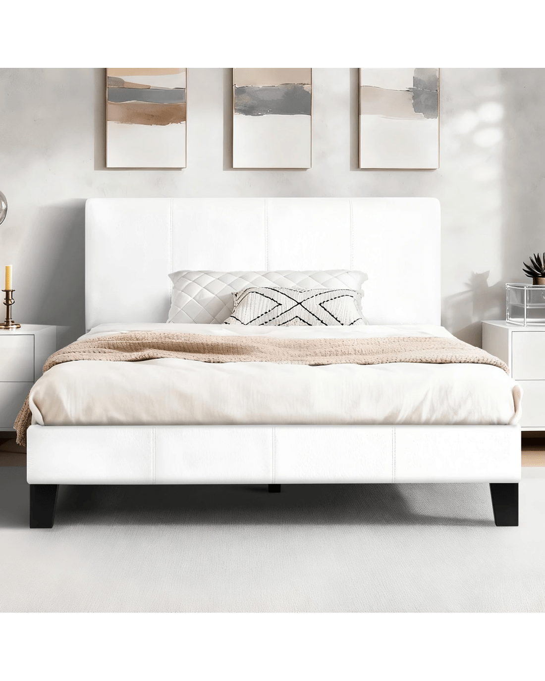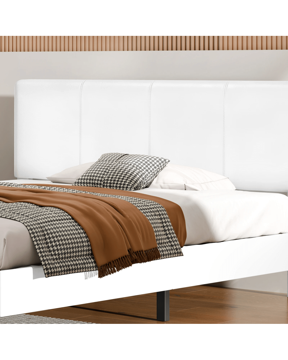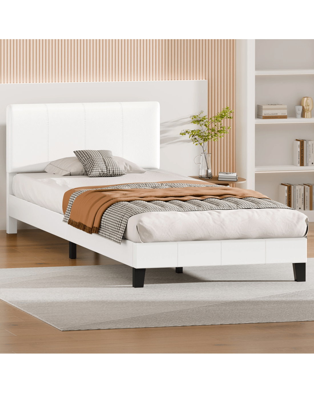 Alfordson Bed Frame Single Size Mattress Base Platform Leather Linus - White