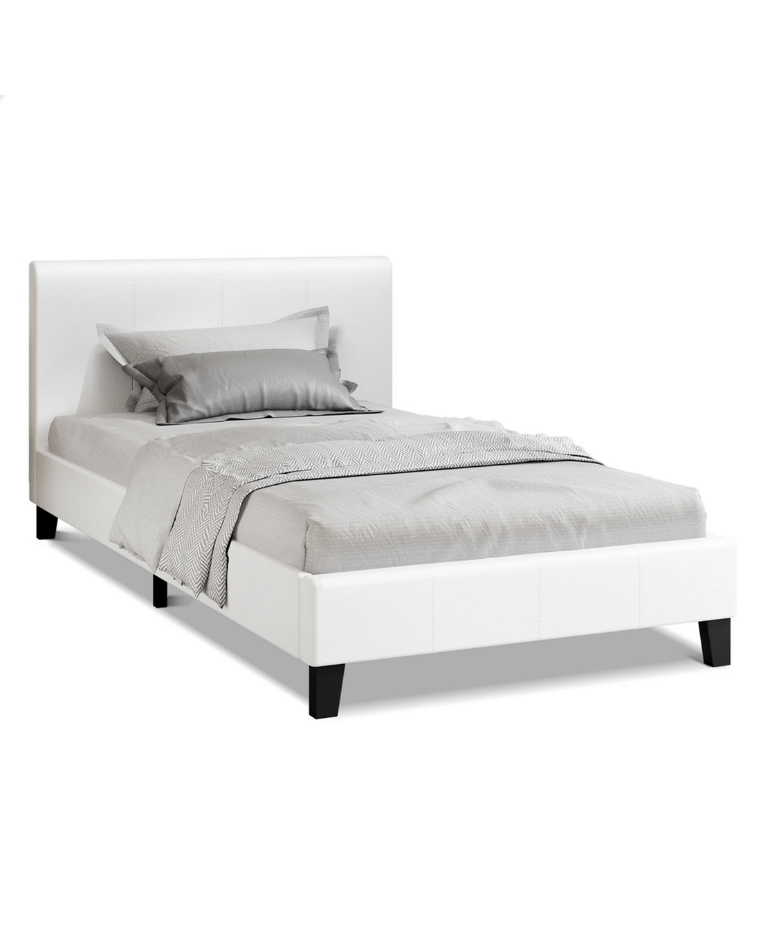 Sold by Aussie Union GroupAlfordson Bed Frame Single Size Mattress Base Wooden Platform Leather - White