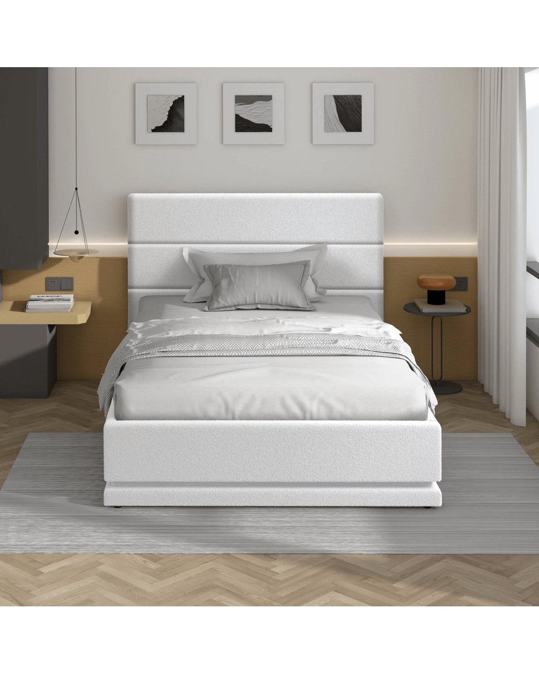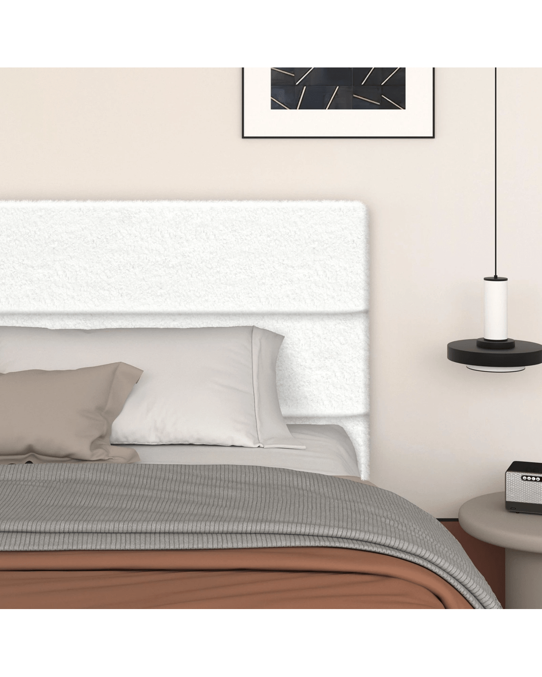 * Modern boucle fabric upholstered bedhead