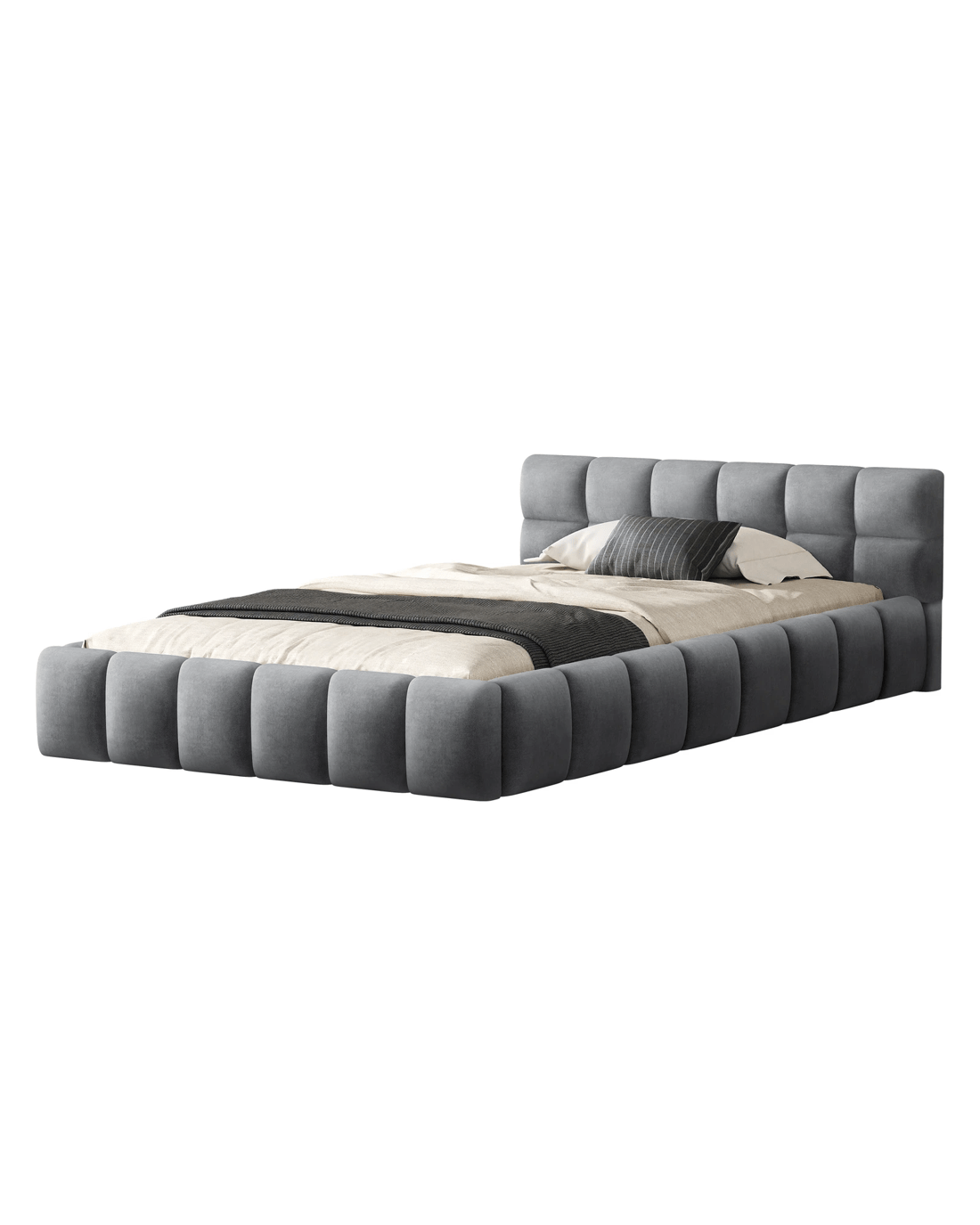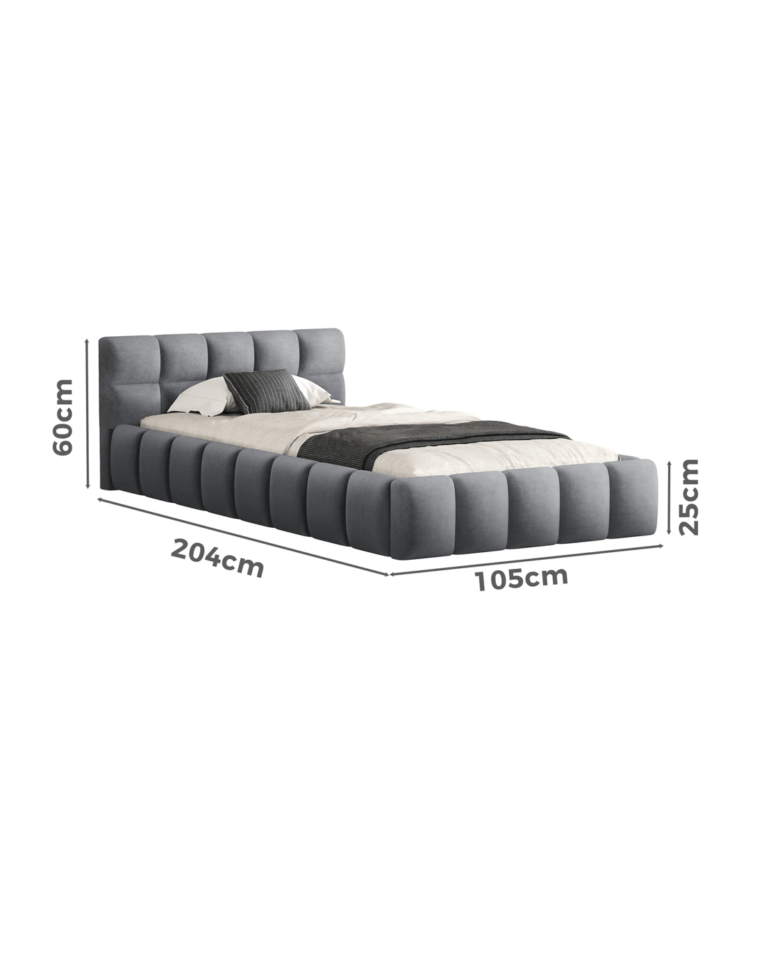 Sold by Aussie Union GroupAlfordson Bed Frame Single Size Tufted Headboard Foundation Velvet Talmon - Grey