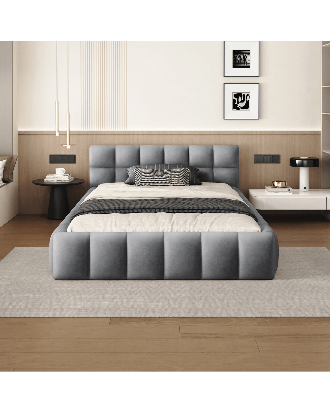 Stand-out style - Part of what's our bedroom comforting is its aesthetic appeal. The beauty of biscuit tufting bed lies in its versatility and ability to complement various design styles. Whether you're going for a mid-century modern vibe or a minimalist aesthetic, this bed has got you covered!