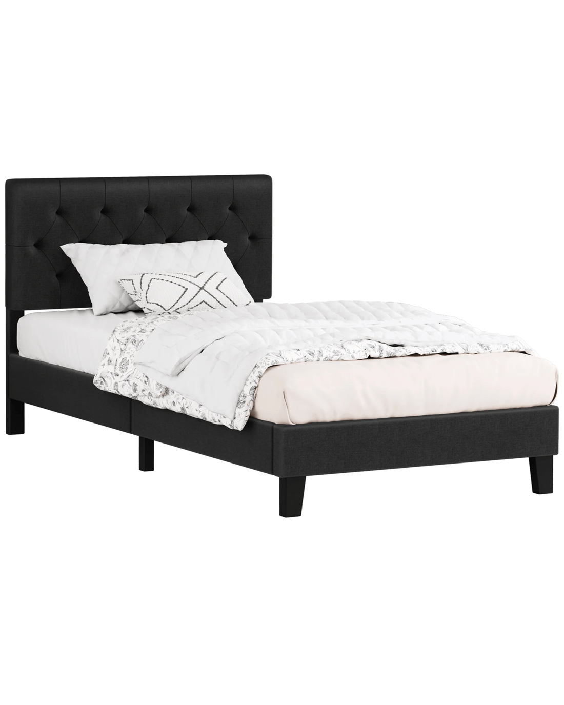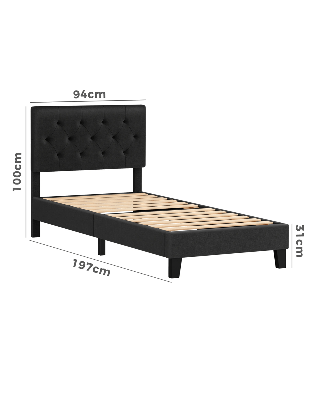 Sold by Aussie Union GroupAlfordson Bed Frame Single Size Tufted Headboard Modern Fabric Meduna - Charcoal