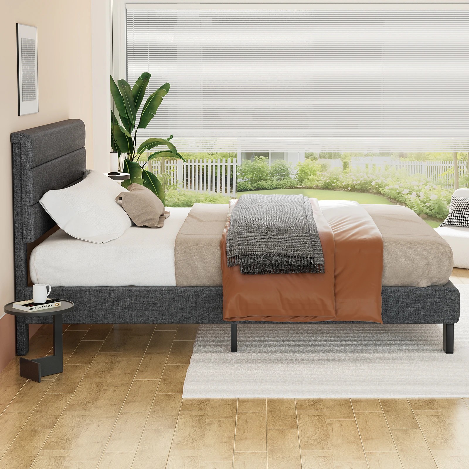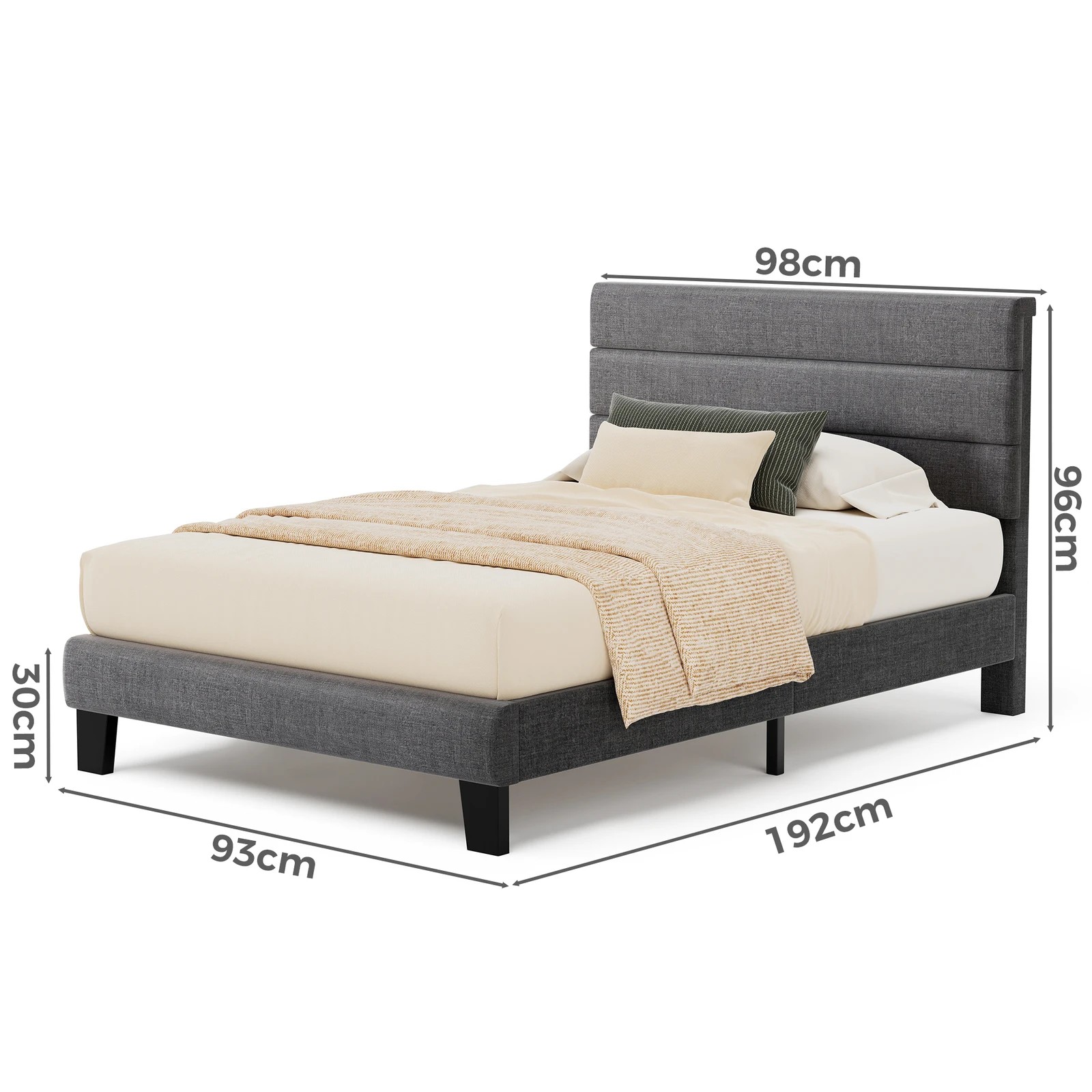 Alfordson Bed Frame Single Size Upholstered Platform Fabric Harlene - Grey
