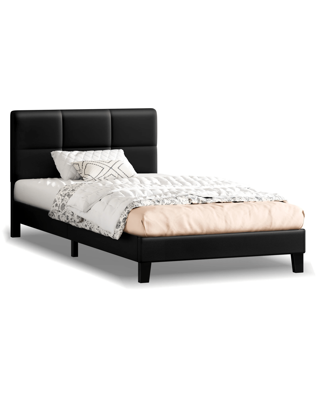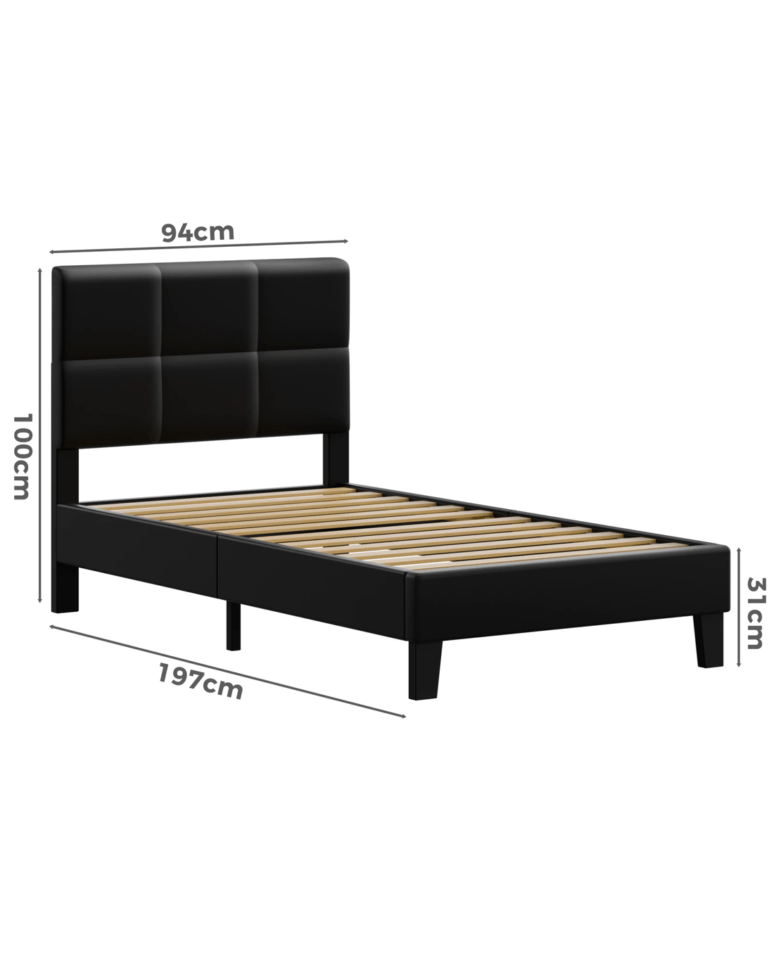 Sold by Aussie Union GroupAlfordson Bed Frame Single Size Wooden Slats Platform Leather Paula - Black