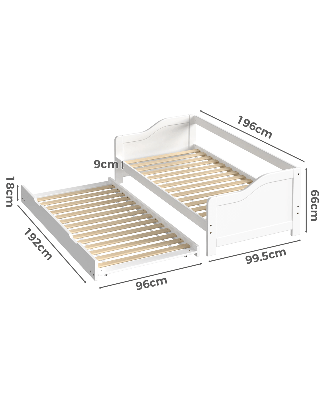 * Size: 196cm x 99.5cm x 66cm (single bed)/ 196cm x 195.5cm x 66cm (2 twin beds)
