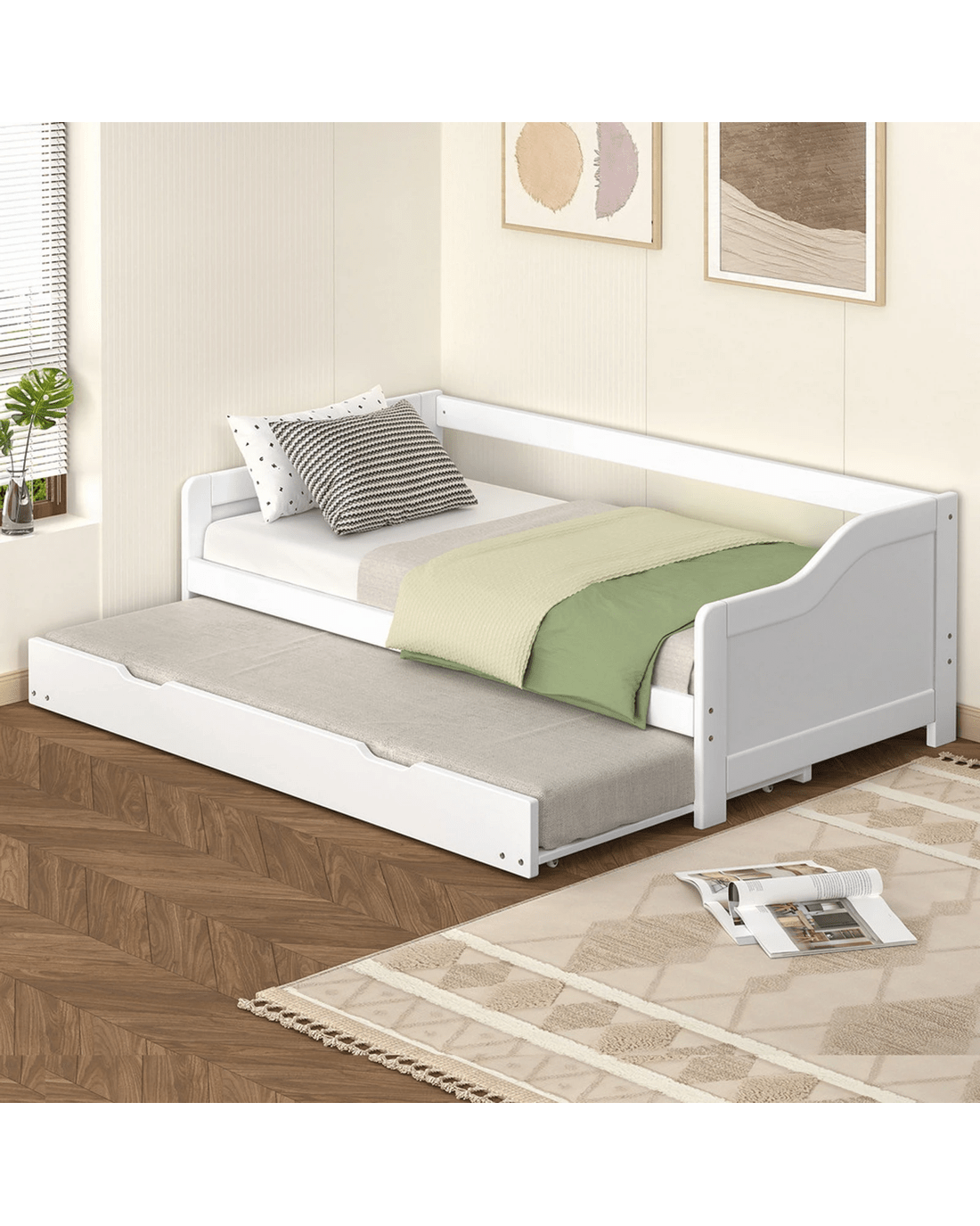 Versatile Use - rong> - Trundle beds are especially practical in multi-use rooms, such as home offices that double as guest rooms, childrens bedrooms for sleepovers, or in any living space where optimizing room usage is crucial.