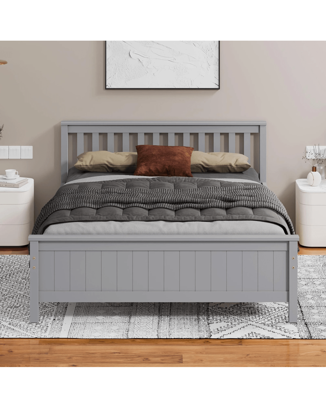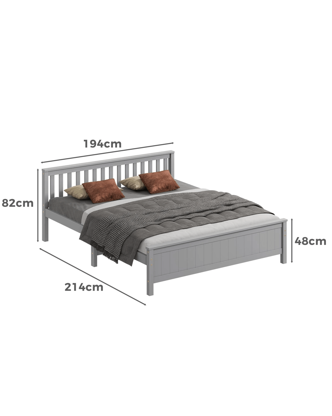 Sold by Aussie Union GroupAlfordson Bed Frame Wooden King Size Slatted Headboard Timber Fabiano - Grey