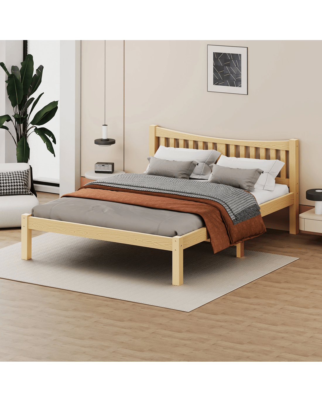 Sold by Aussie Union GroupAlfordson Bed Frame Wooden Queen Size Solid Pine Timber Base Cambrie - Natural