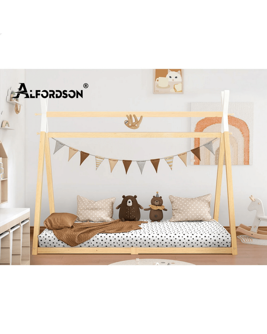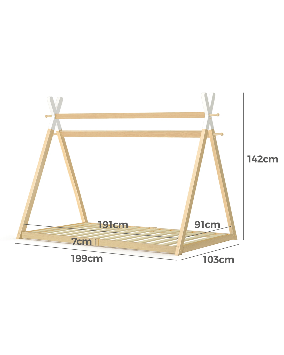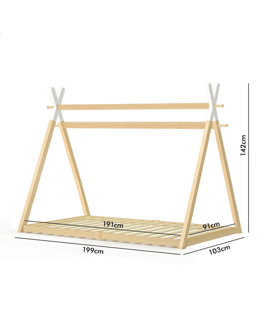 Sold by Aussie Union GroupAlfordson Bed Frame Wooden Single Timber Teepee House Base Platform Thomas - Natural