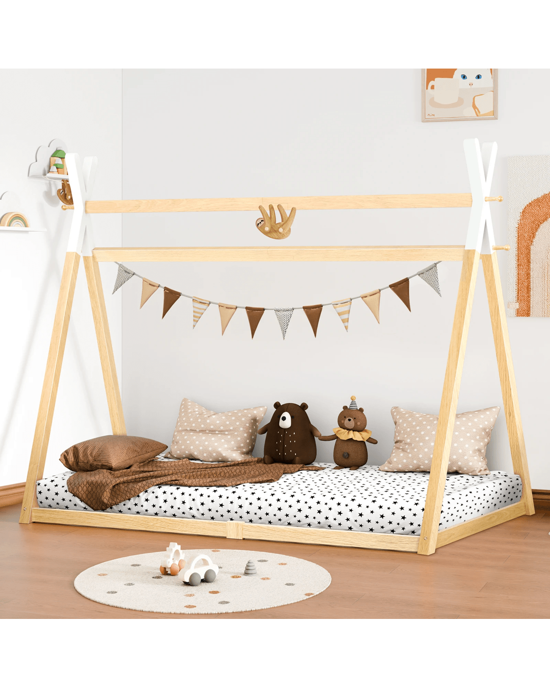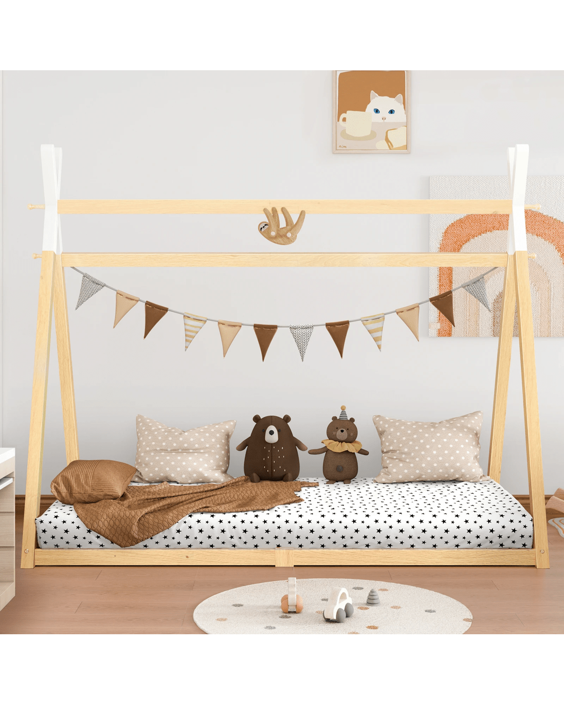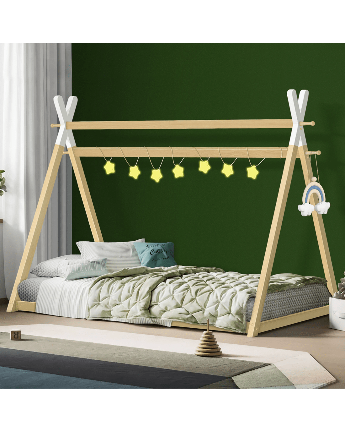 Sold by Aussie Union GroupAlfordson Bed Frame Wooden Single Timber Teepee House Base Platform Thomas - Natural
