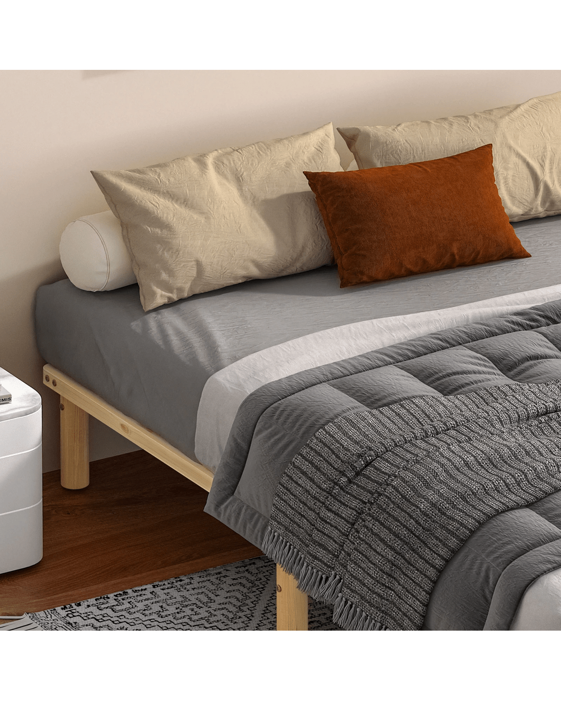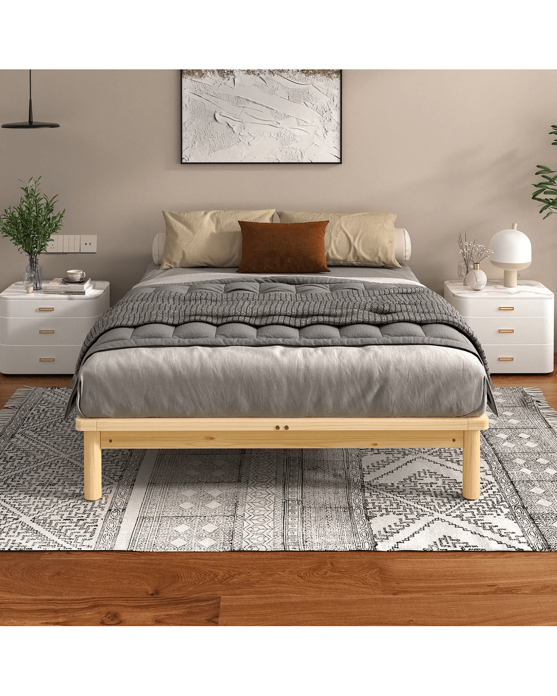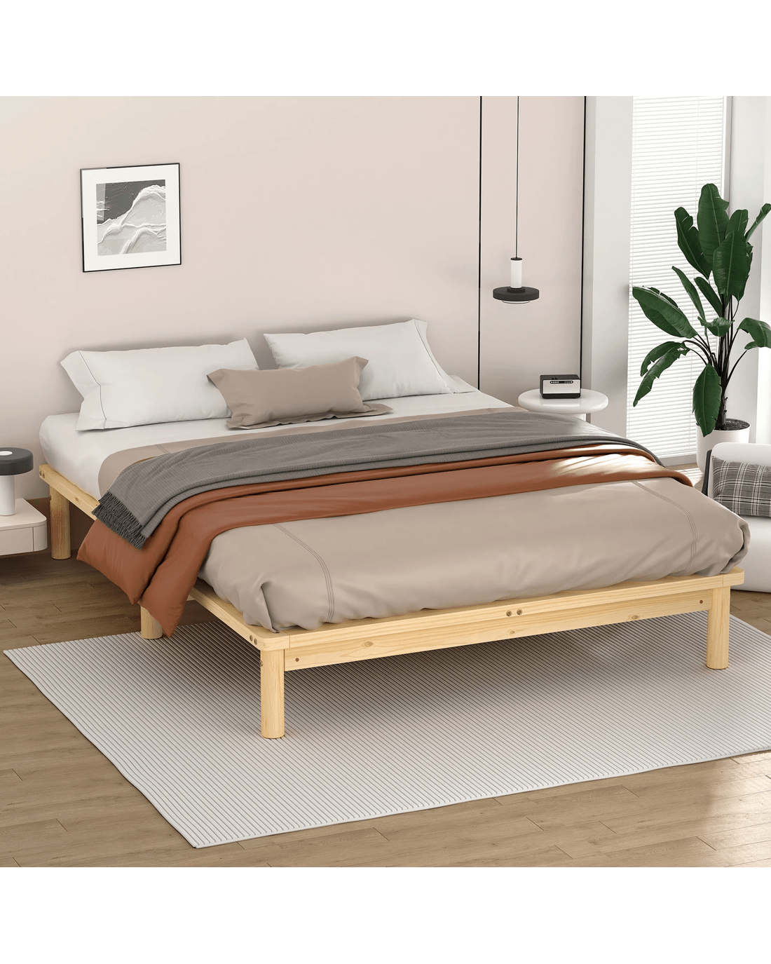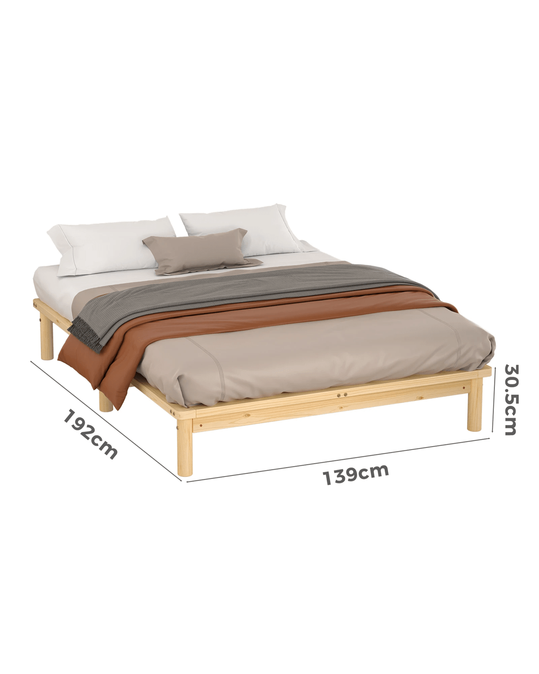 Alfordson Bed Frame Wooden Timber Double Size Mattress Base Platform Basia - Natural
