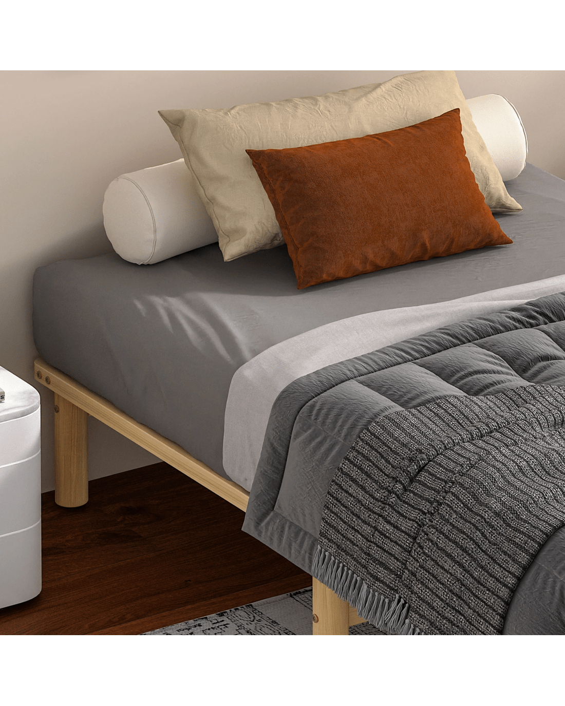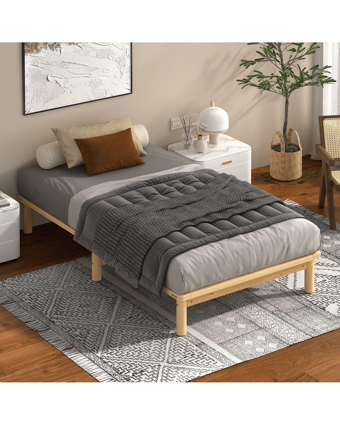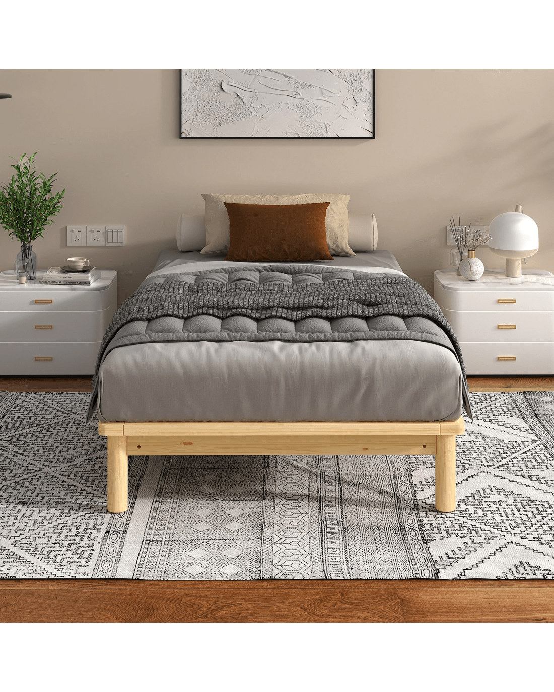 * Bed frame material: Pine wood