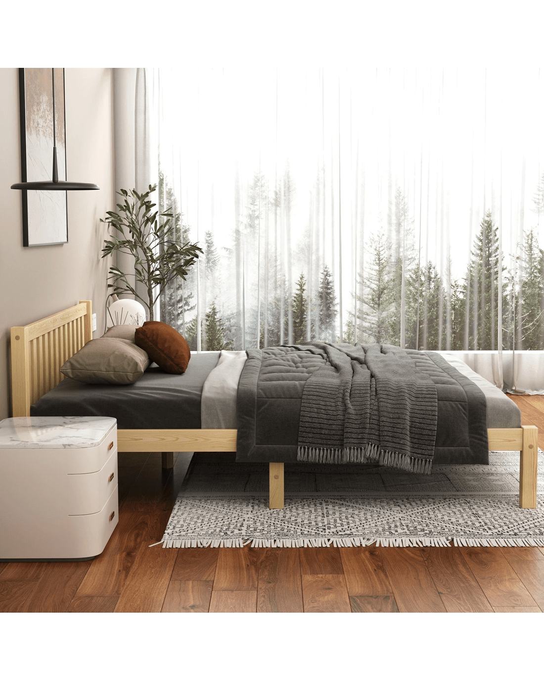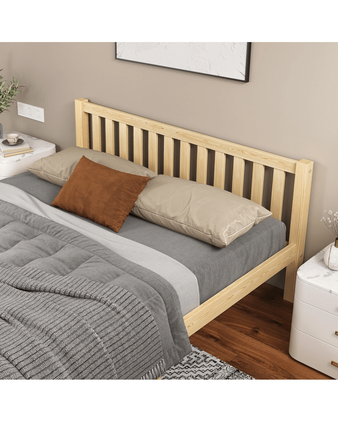 * Bed frame material: Pine wood