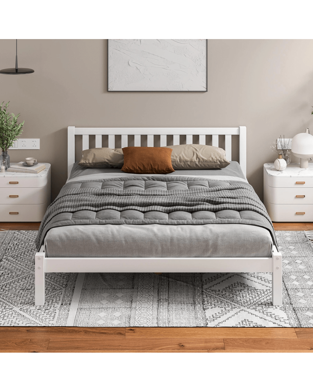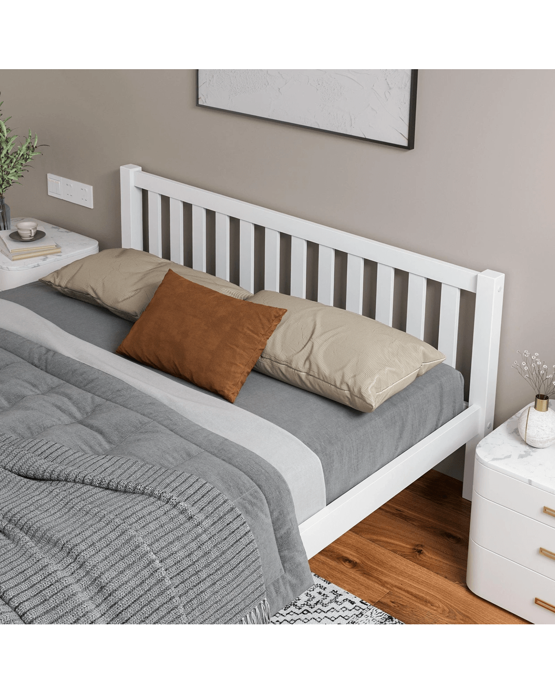 Sold by Aussie Union GroupAlfordson Bed Frame Wooden Timber King Size Mattress Base Platform Fenella - White