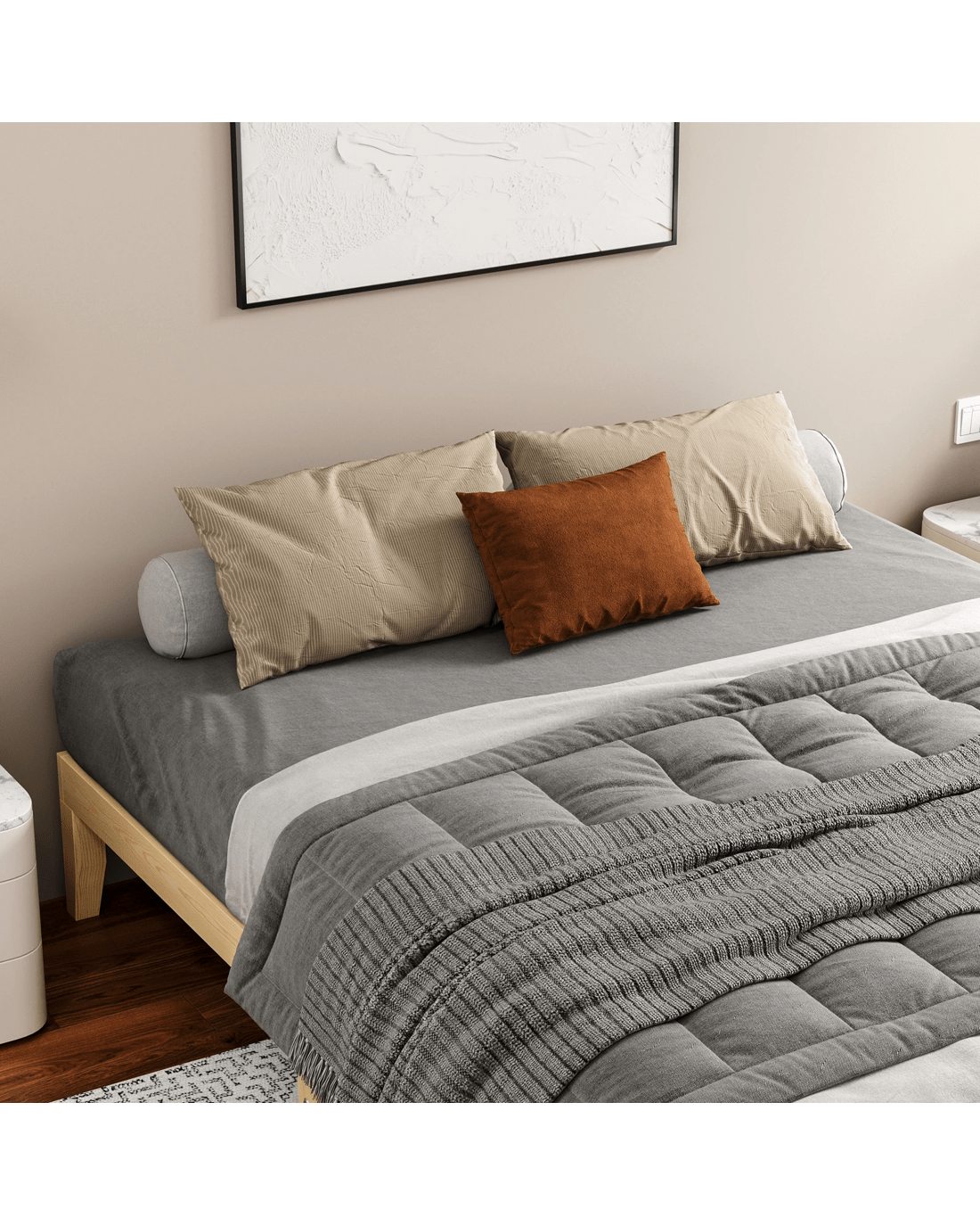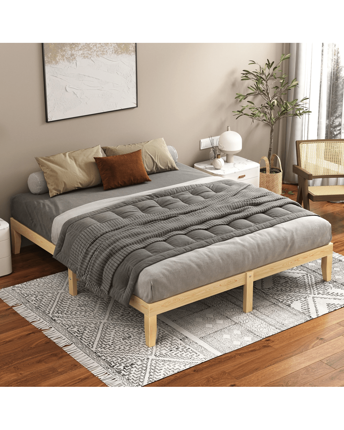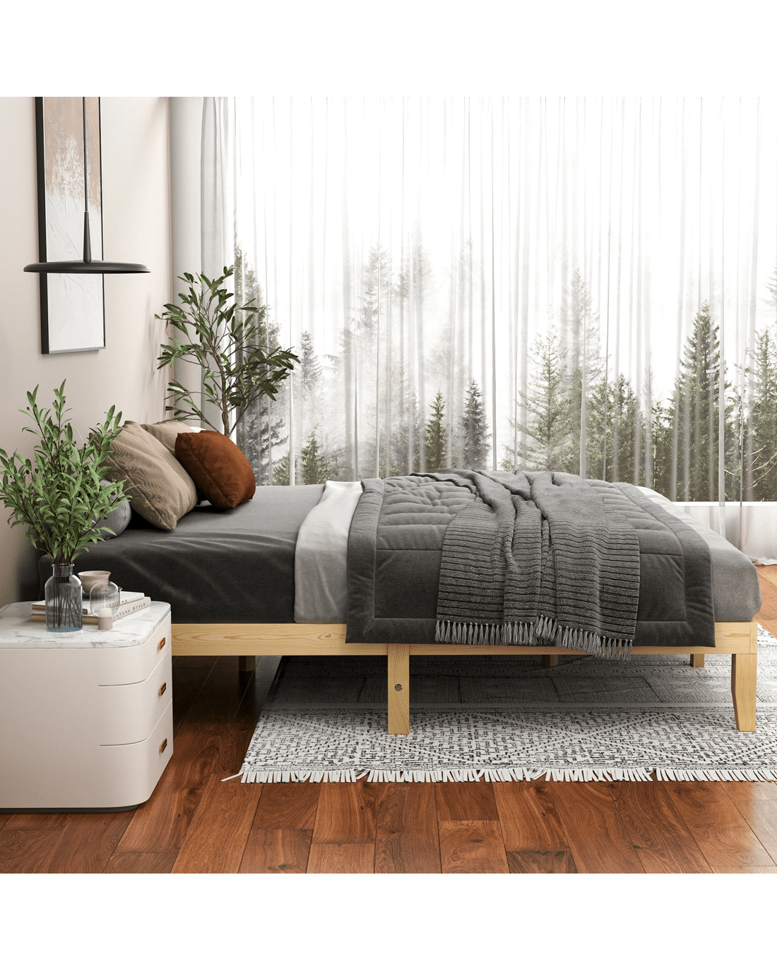 * Bed frame material: Pine wood