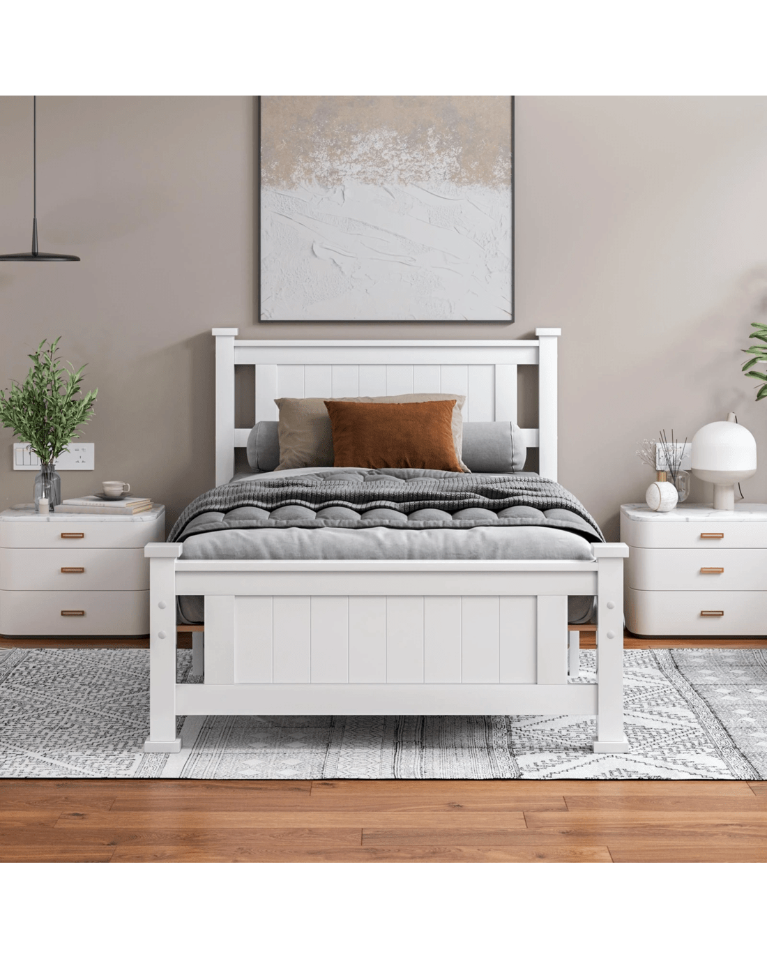 Sold by Aussie Union GroupAlfordson Bed Frame Wooden Timber Single Size Mattress Base Platform Arne - White