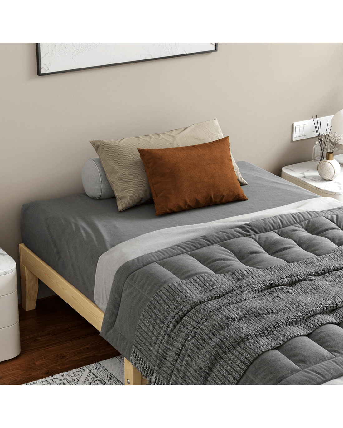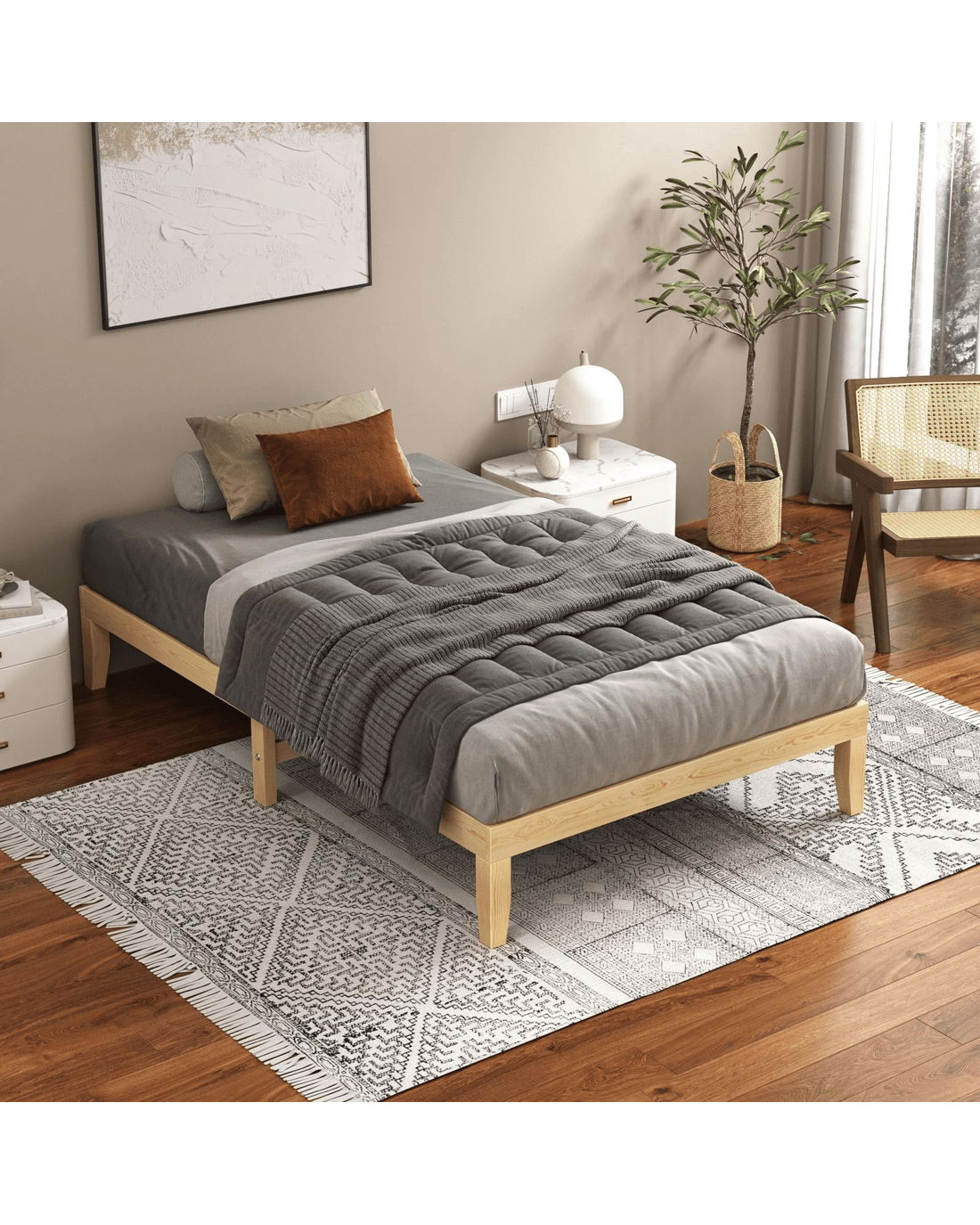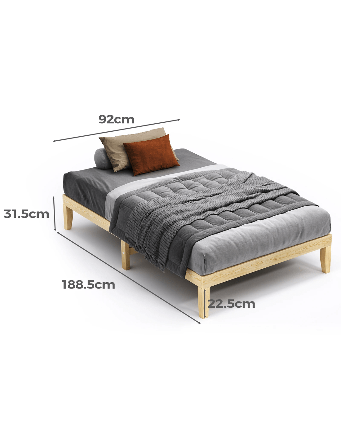 Alfordson Bed Frame Wooden Timber Single Size Mattress Base Platform Pramod - Natural