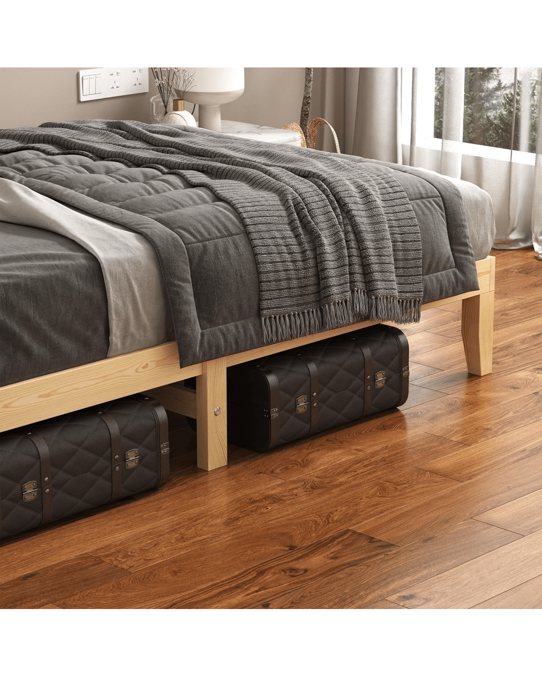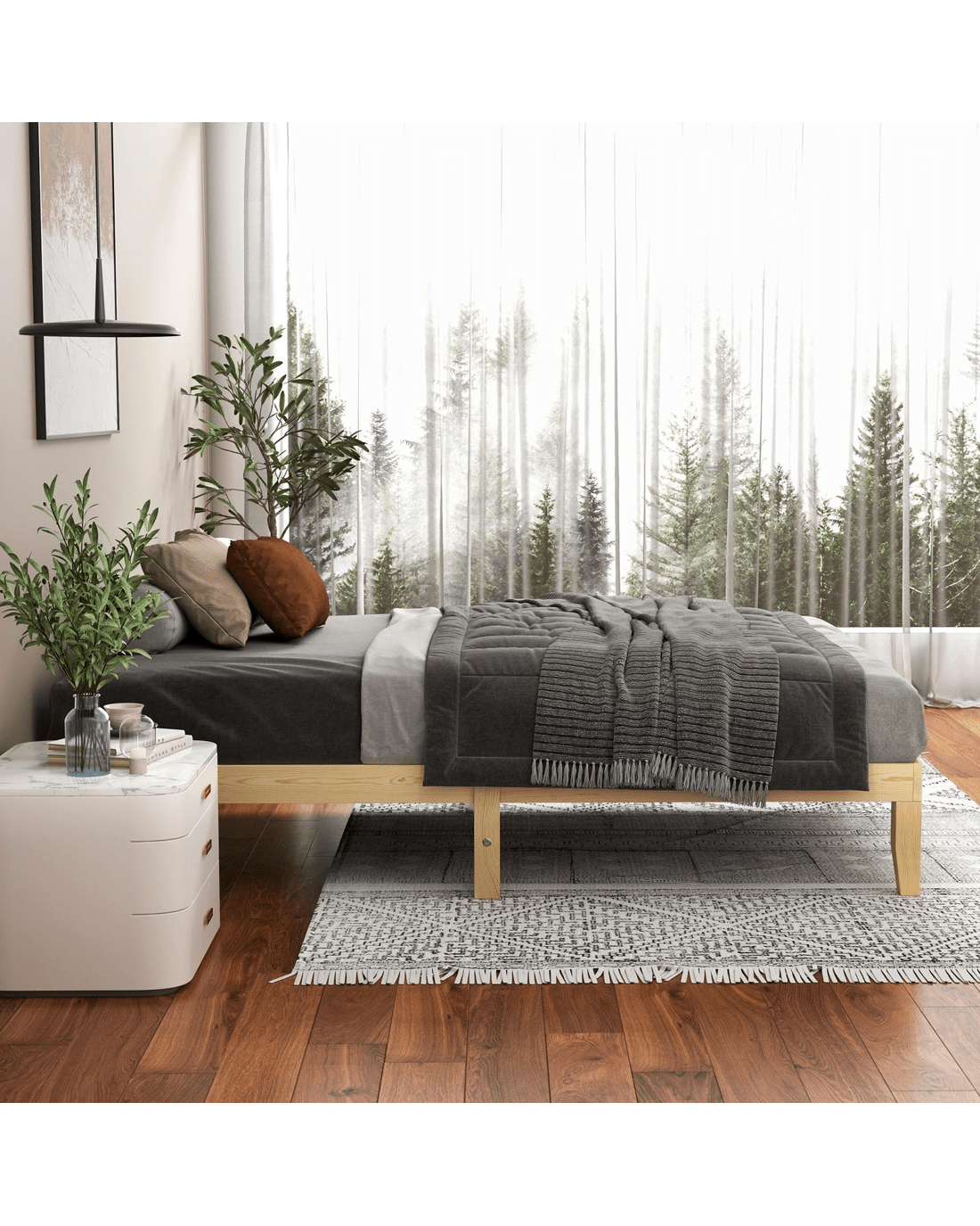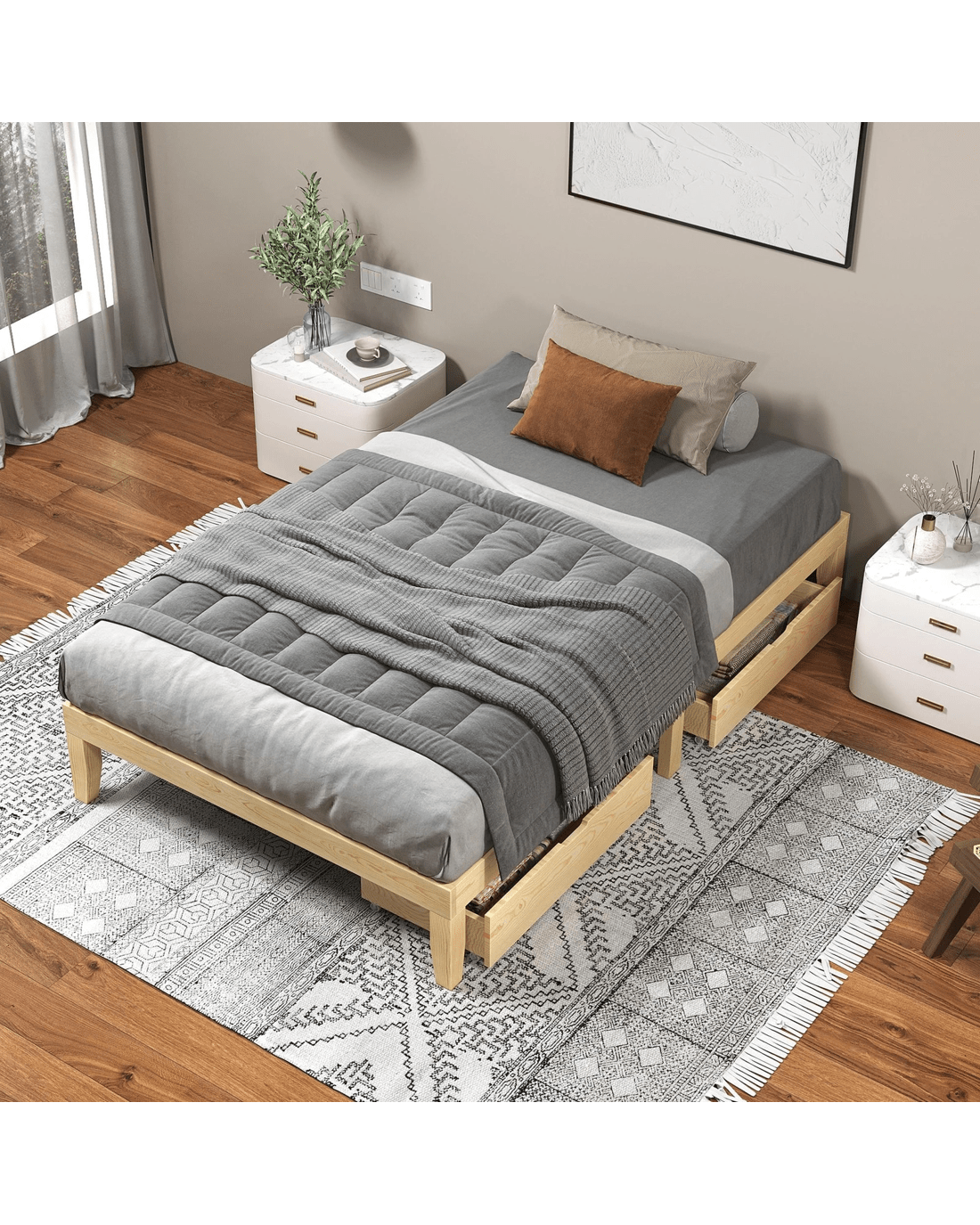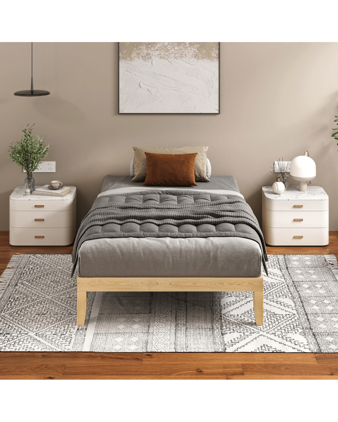 Alfordson Bed Frame Wooden Timber Single Size Mattress Base Platform Pramod - Natural
