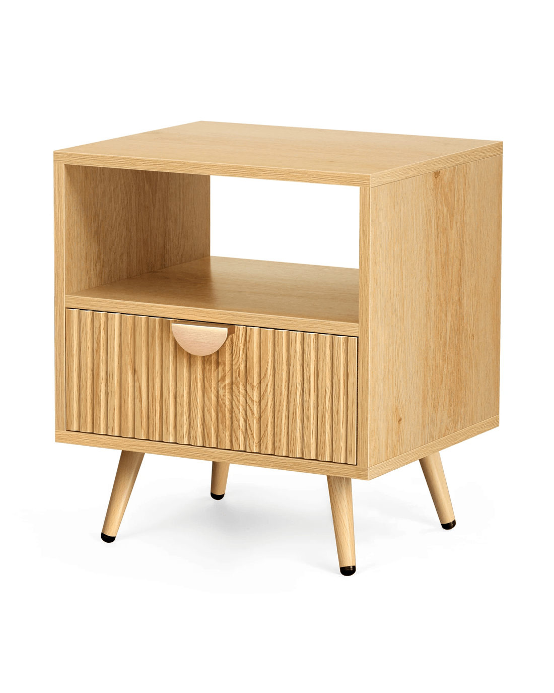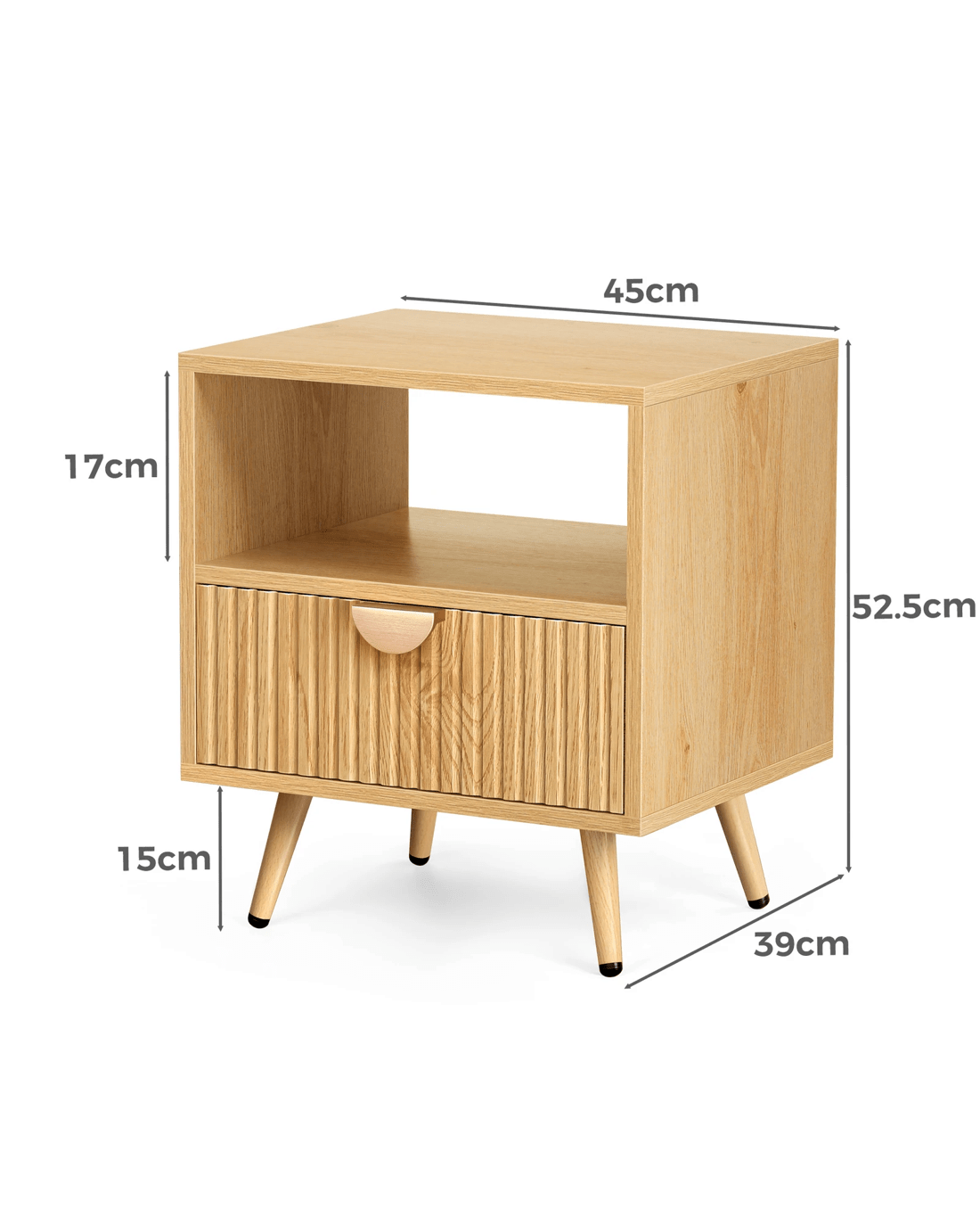 Inspired by extraordinary and authentic sophisticated modern style design, this bedside table can serve as a functional addition at the side of your bed. It provides a surface to place necessary items like a lamp, a laptop, a book, a glass of water, medicine or vitamin pills, or whatever else you may want to keep close by the bed. It also features a open shelf, which provides the perfect spot to slot your latest read, tablet or magazines. Not least, featuring a spacious drawer, it provides ample storage so that those items you store away in the drawers won't gather dust.