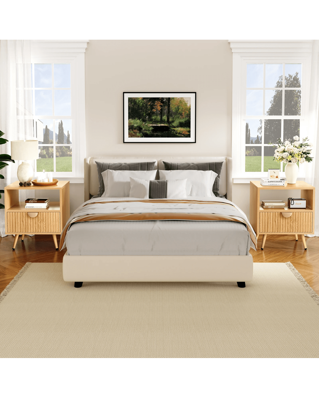 As you may or may not know, most people prefer to have two bedside tables in the bedroom because they help achieve symmetry in the design and increases storage space. Moreover, these tables can be used as side tables next to your lounge or TV stand.