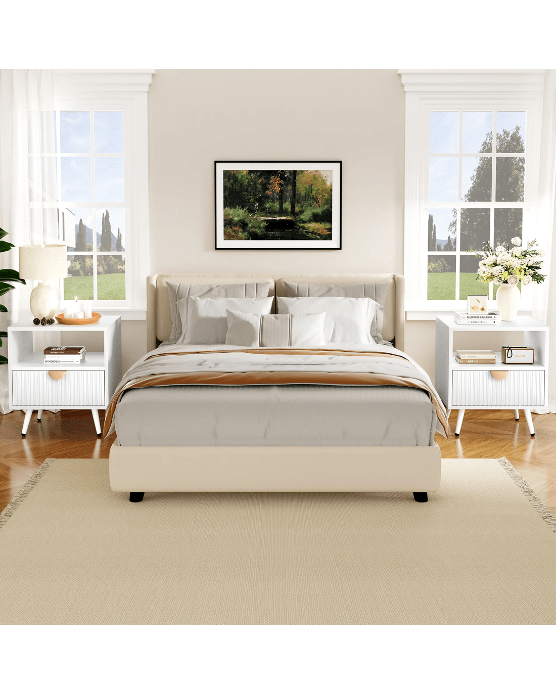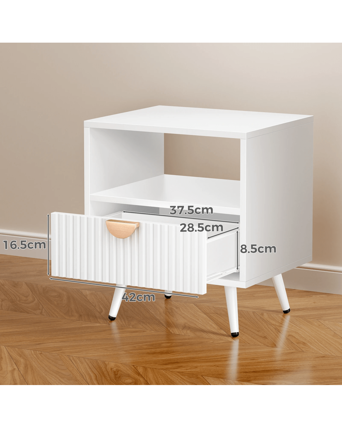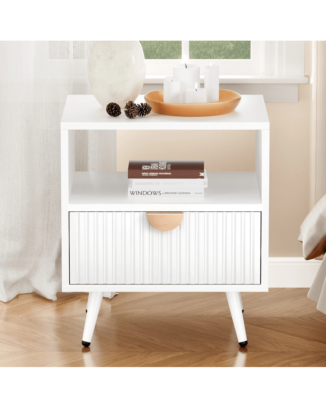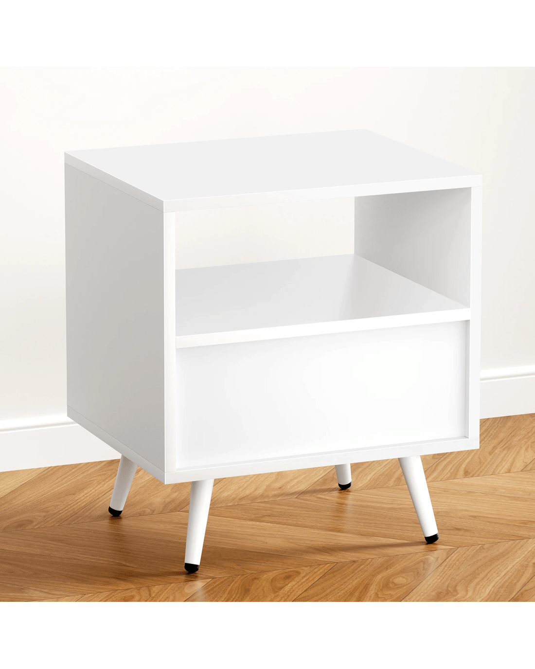 Alfordson Bedside Table 1 Drawer Side Storage Shelf Nightstand - White