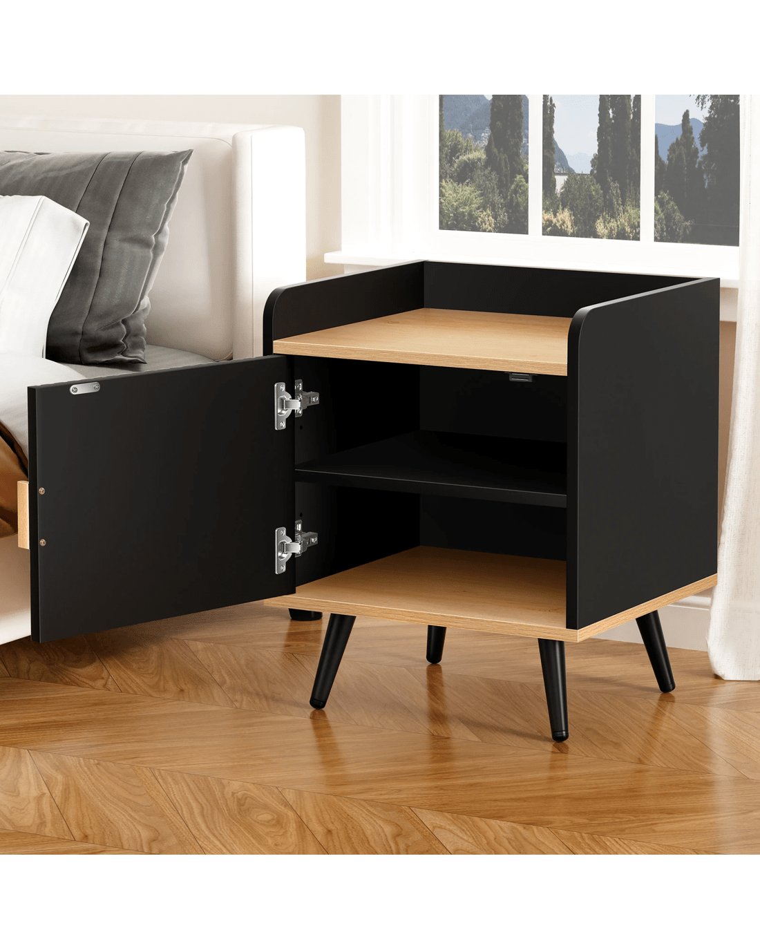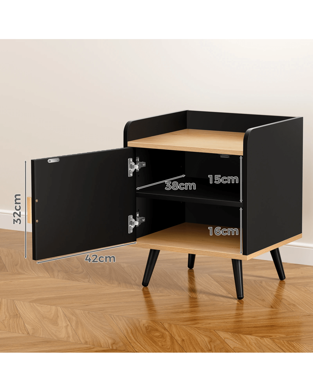 Alfordson Bedside Table Cabinet Nightstand Side Storage - Black