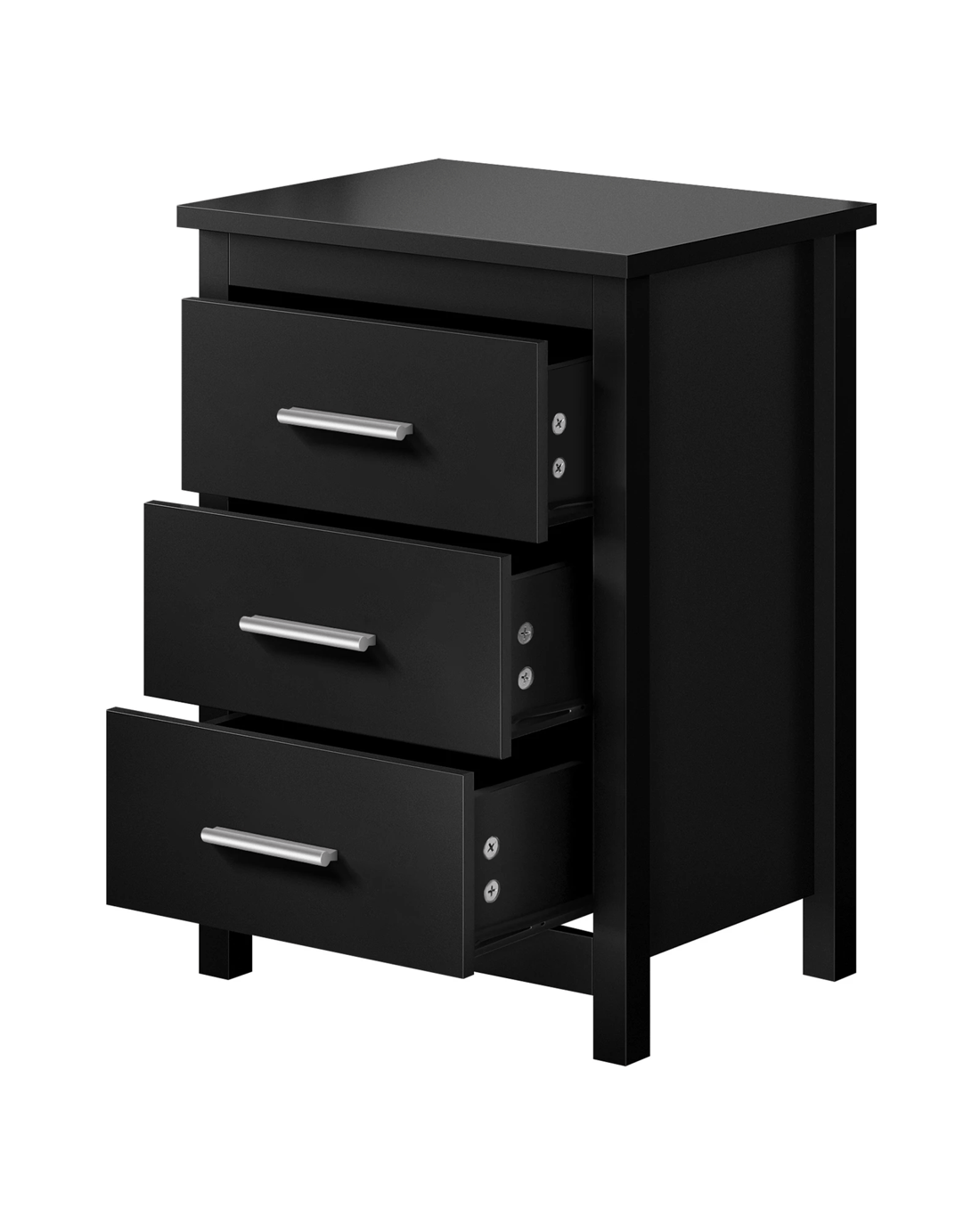 Alfordson Bedside Table Hamo Nightstand Storage Side End 3 Drawers - Black