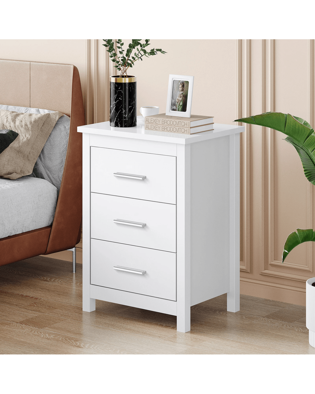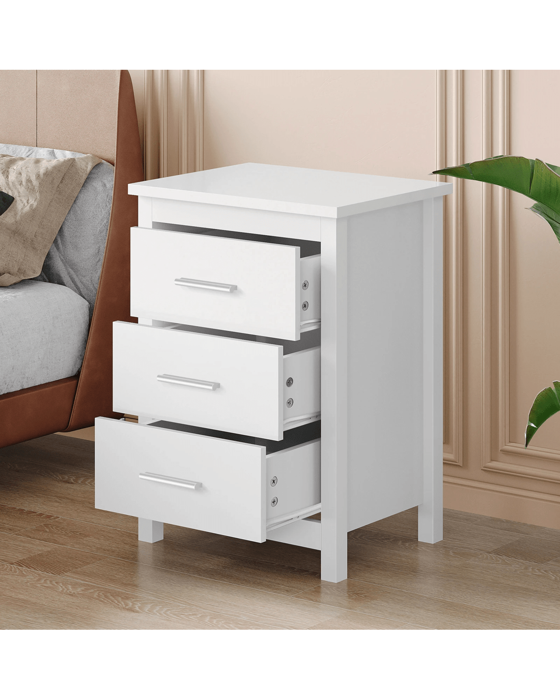 Sold by Aussie Union GroupAlfordson Bedside Table Hamo Nightstand Storage Side End 3 Drawers - White