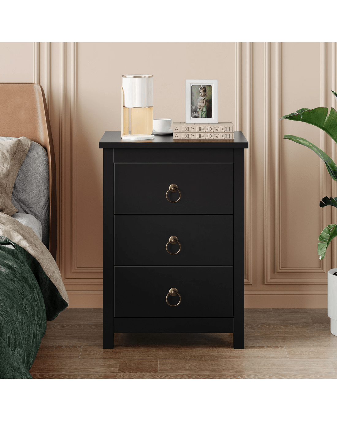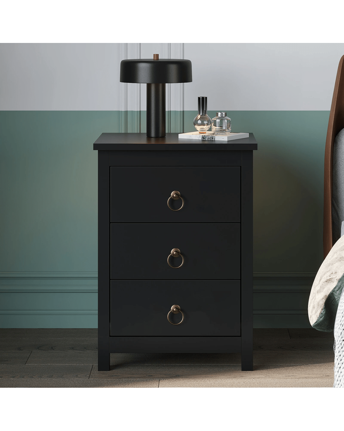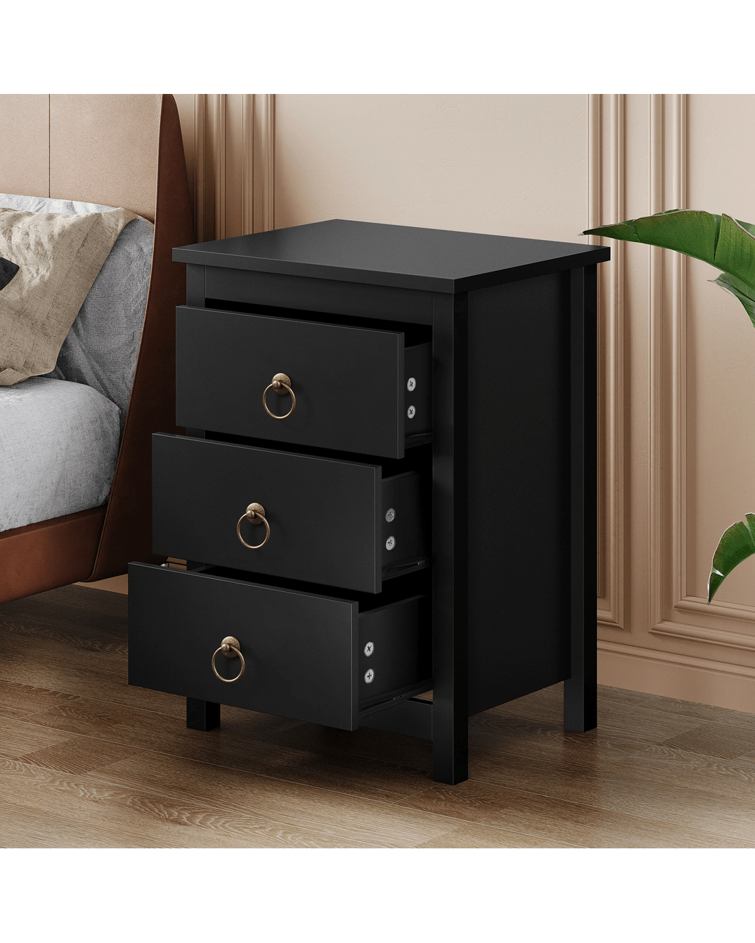 Sold by Aussie Union GroupAlfordson Bedside Table Hamptons 3 Drawers Nightstand Storage Side End - Black