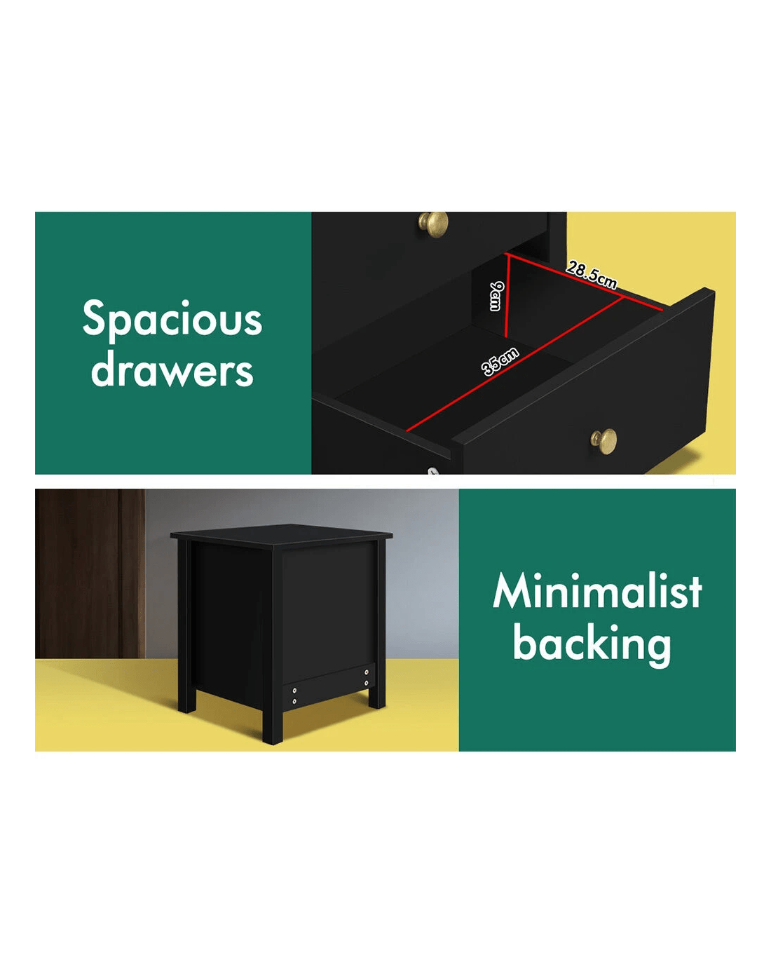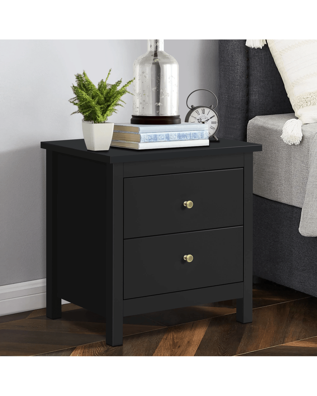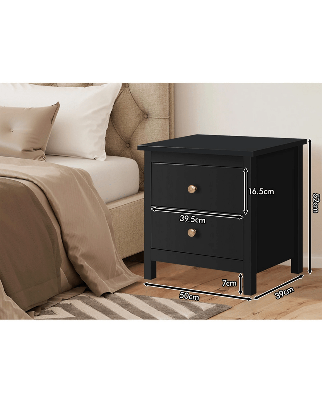 Sold by Aussie Union GroupAlfordson Bedside Table Hamptons Nightstand Storage Side End 2 Drawers - Black