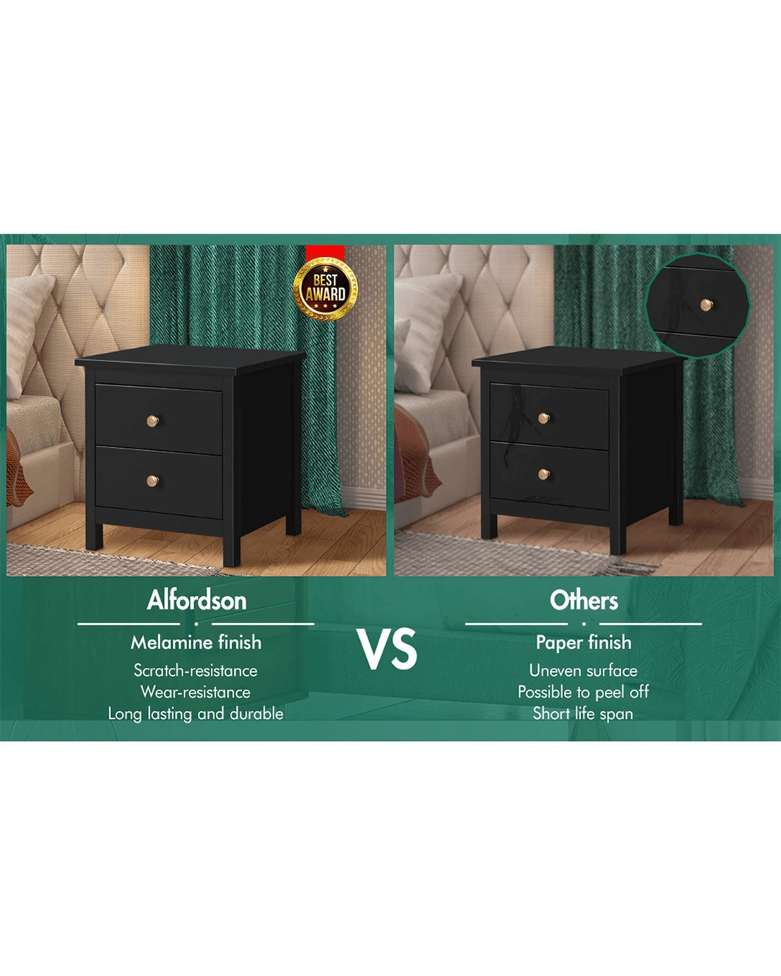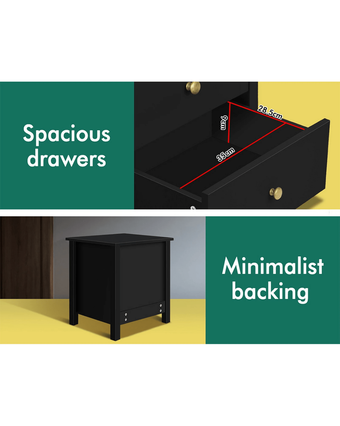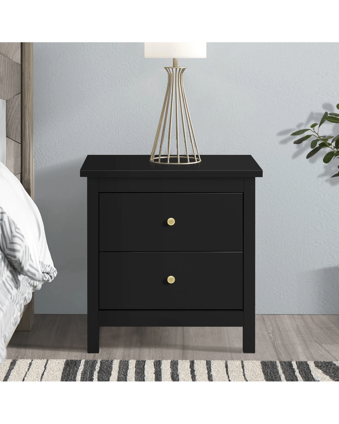 Sold by Aussie Union GroupAlfordson Bedside Table Hamptons Nightstand Storage Side End 2 Drawers - Black