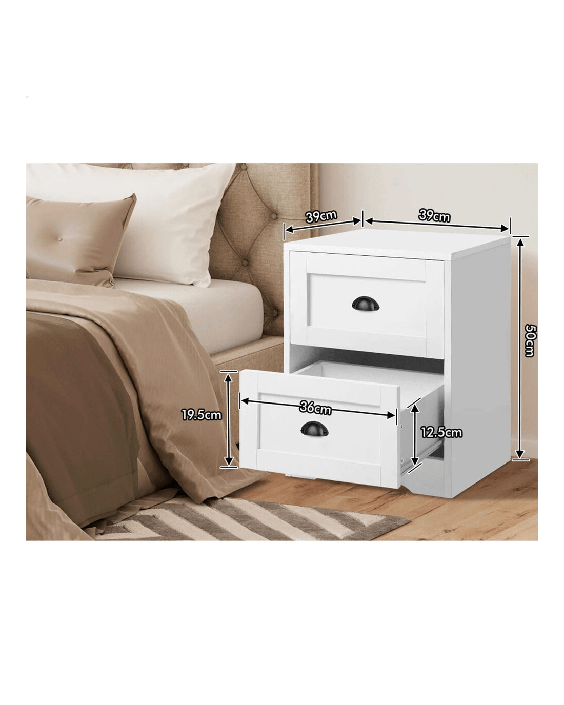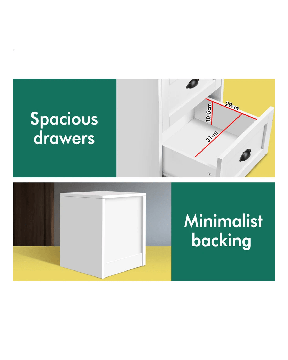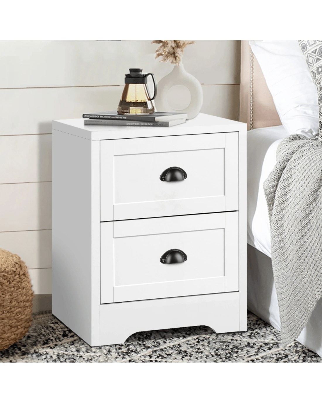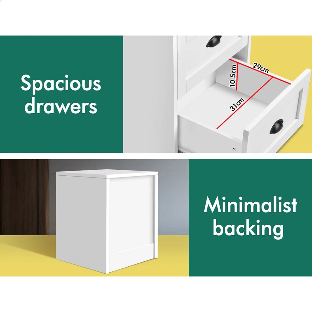 Alfordson Bedside Table Hamptons Nightstand Storage Side End Cabinet - White